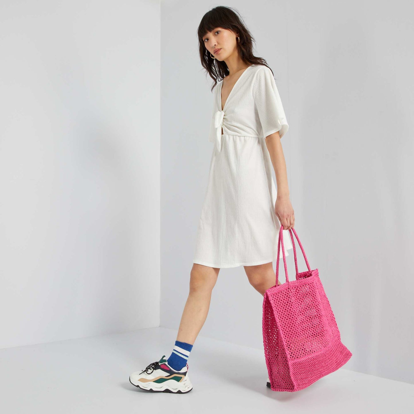 Une robe courte, stretch, avec une maille gaufrée. Vous allez adorer vous sentir libre de tous vos mouvements avec !