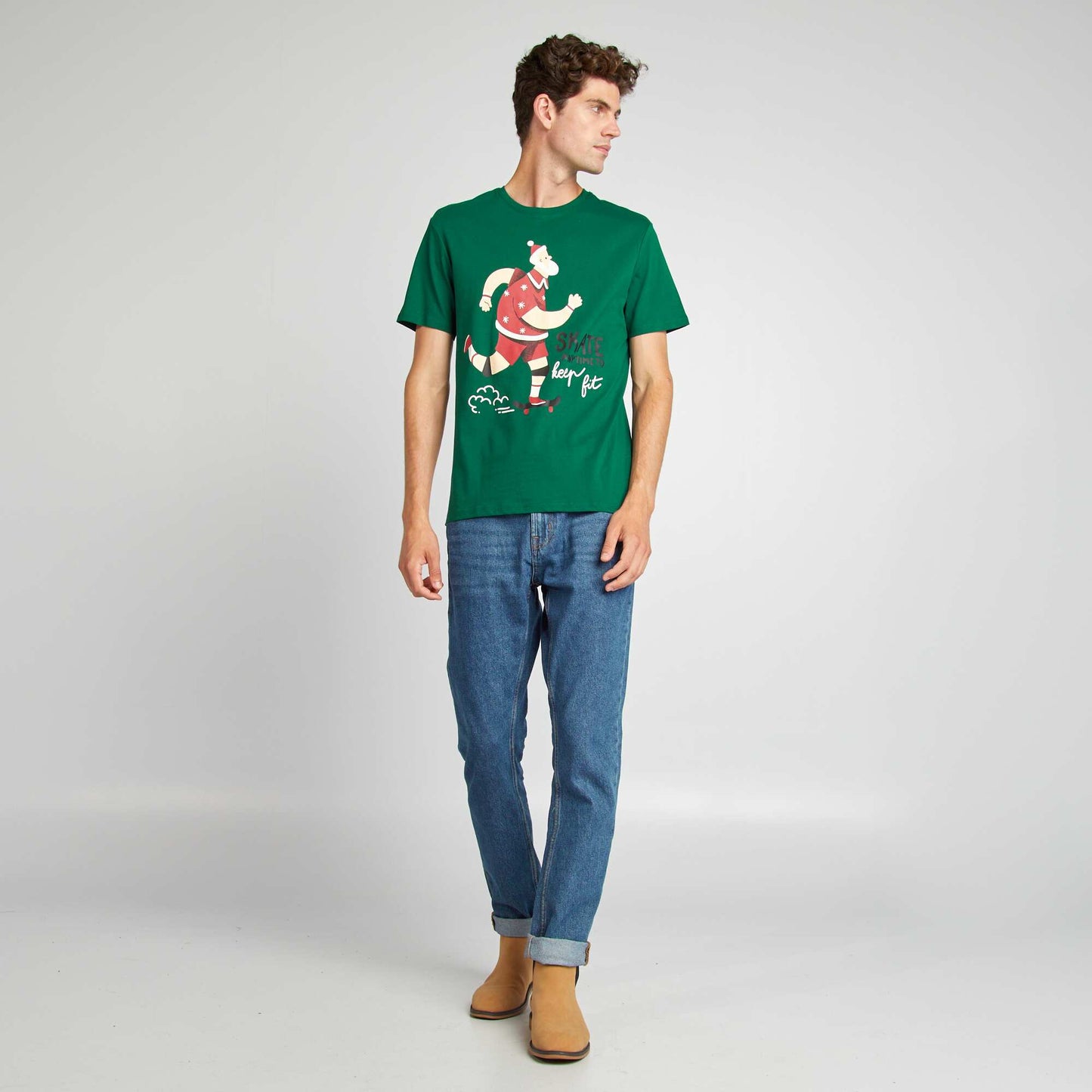 Célébrez les fêtes avec notre tee-shirt de Noël festif ! - Tee-shirt de Noël - Coupe droite - En coton - Manches courtes - Col rond - Imprimé thématique Noël - Longueur dos : 71 cm environ - Notre mannequin porte une taille M et mesure 1m89