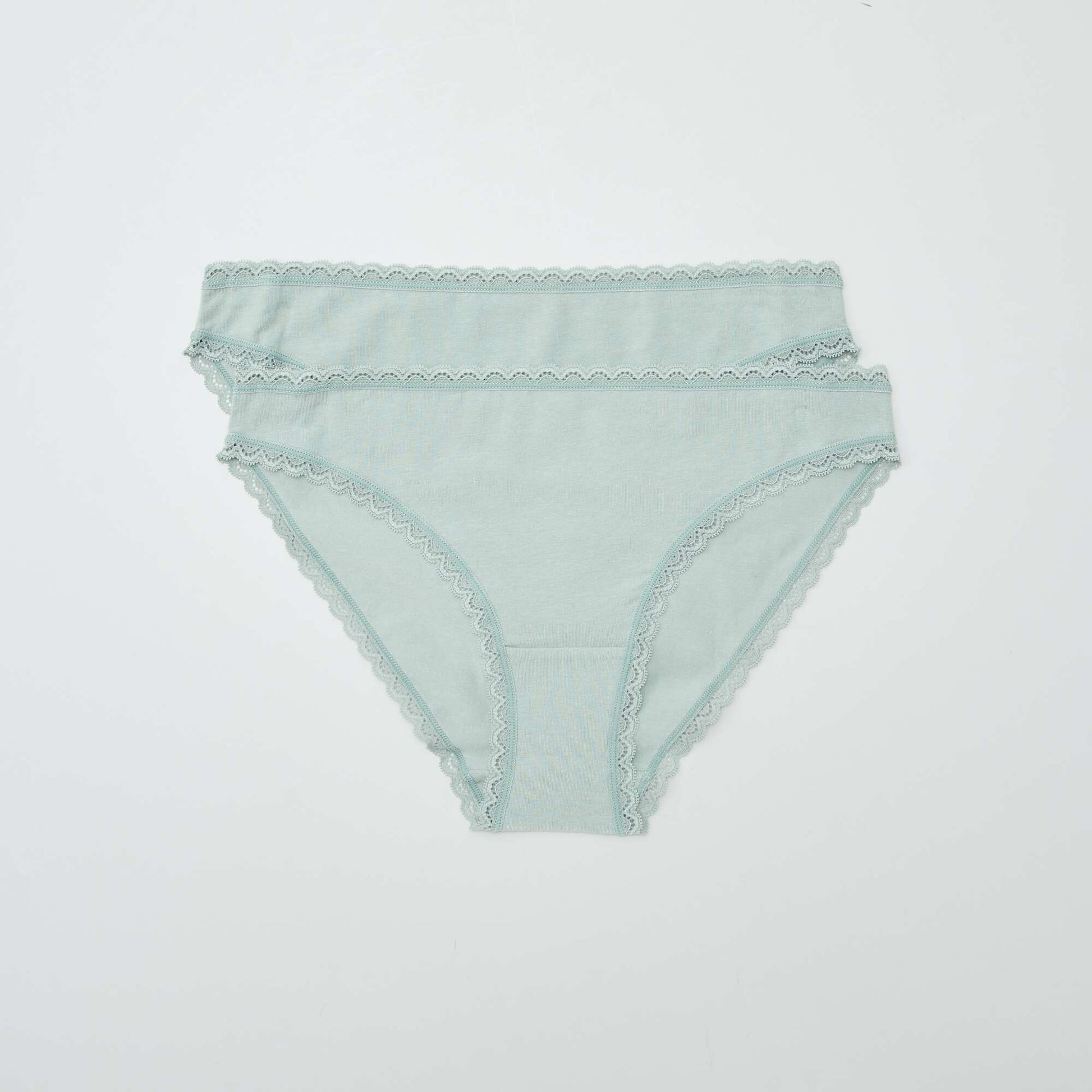 - Lot de 2 culottes en coton \n- Bords dentelle \n- Fond doublé