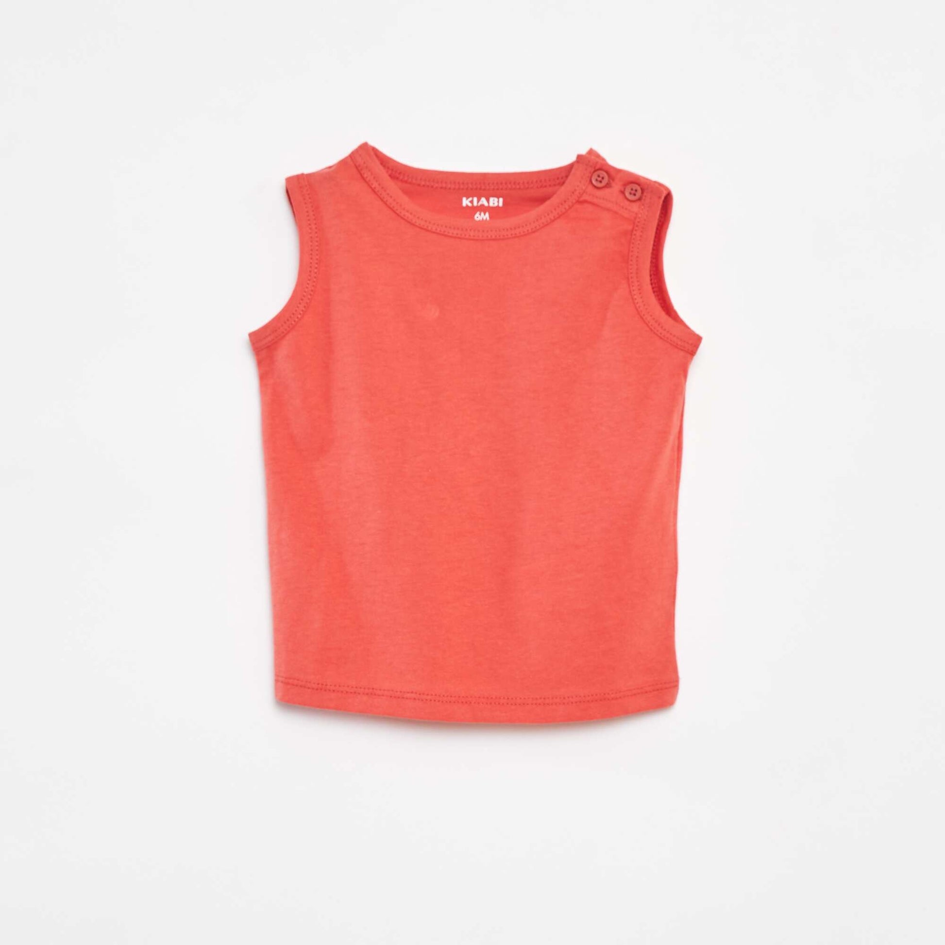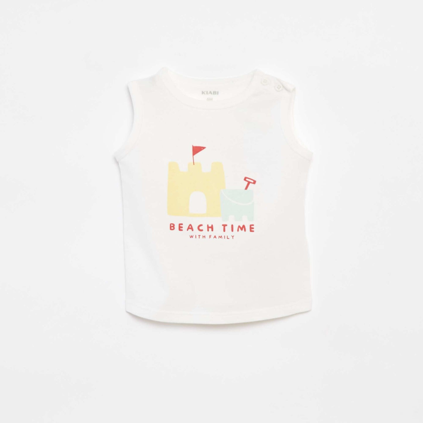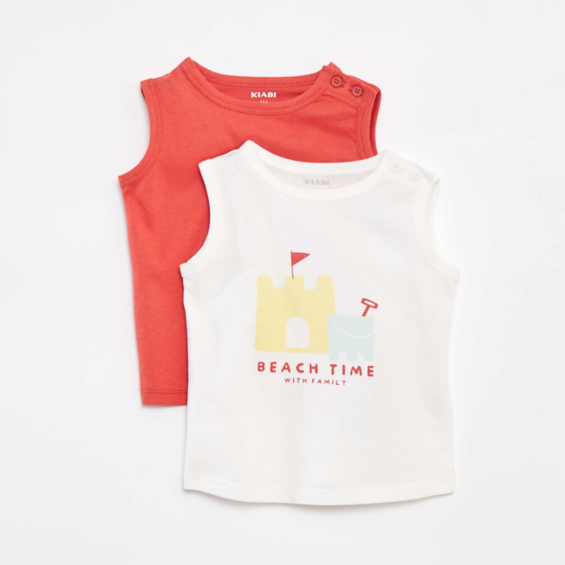 Ajoutez deux jolis débardeurs au dressing de bébé ! \n\n- Débardeurs - 2 pièces \n- Col rond \n- Sans manches \n- 1 imprimé \n- 1 uni