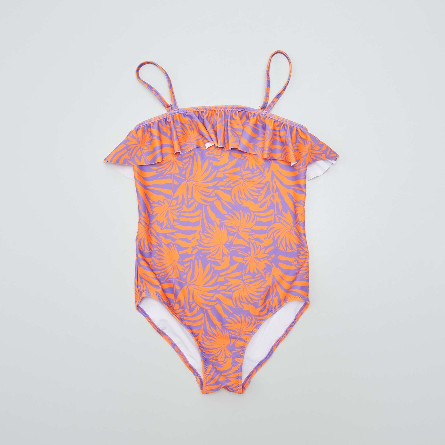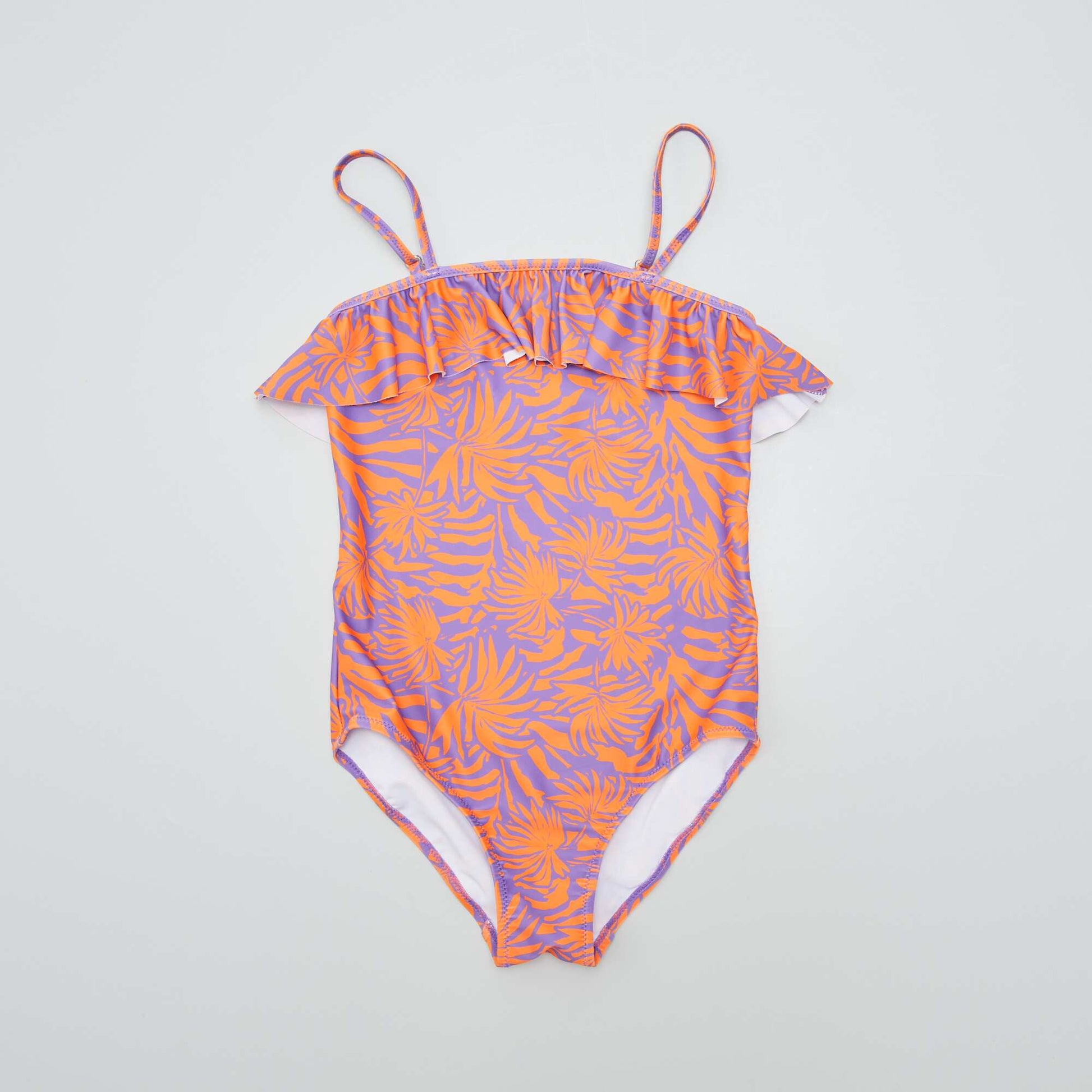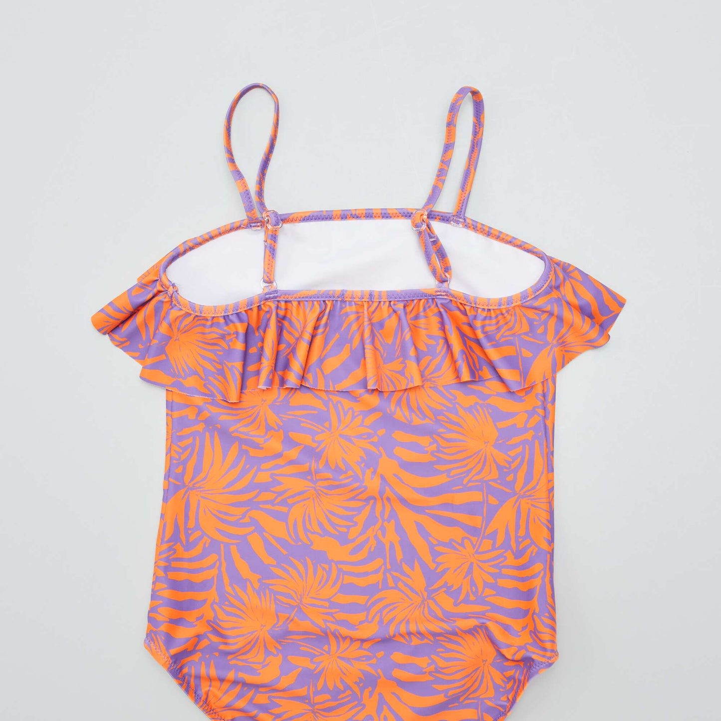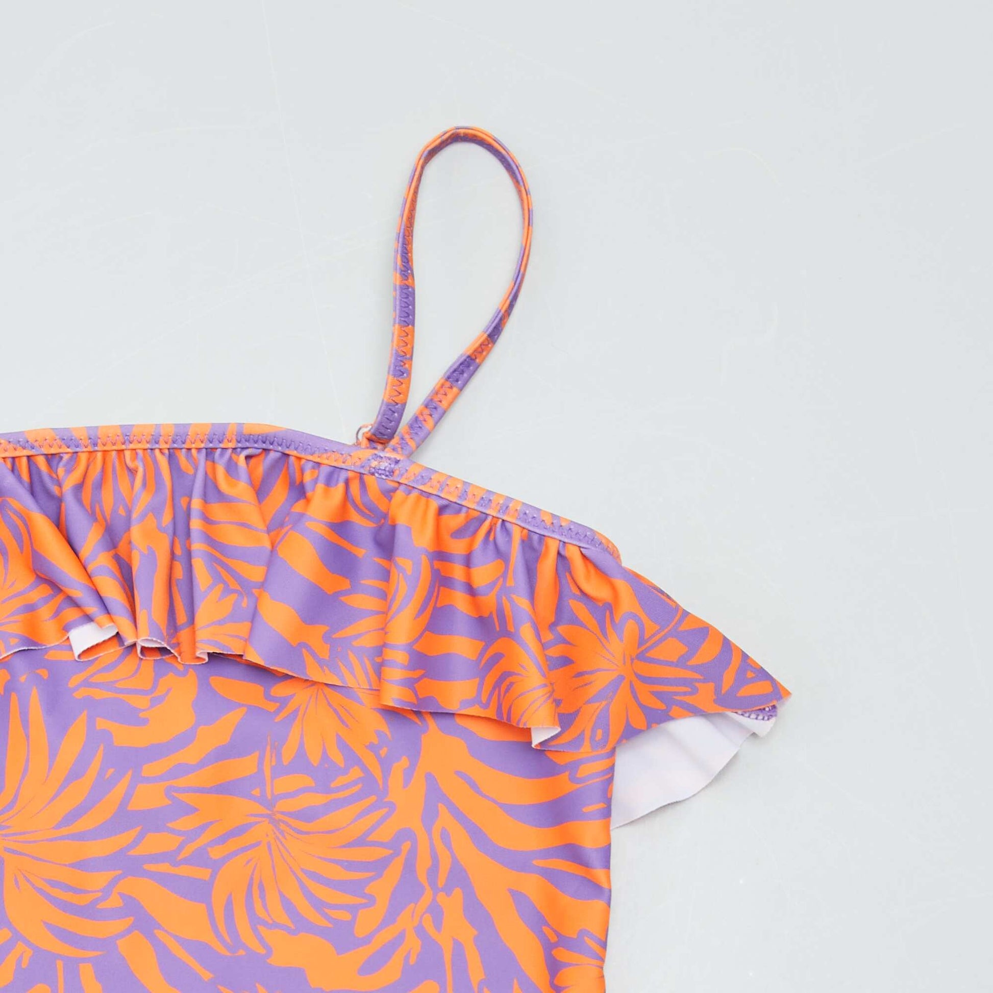 Sous le soleil des tropiques ! - Maillot de bain doublé - 1 pièce - Fines bretelles réglables - Poitrine volantée - Imprimé all-over fleuris - Cuisses élastiques