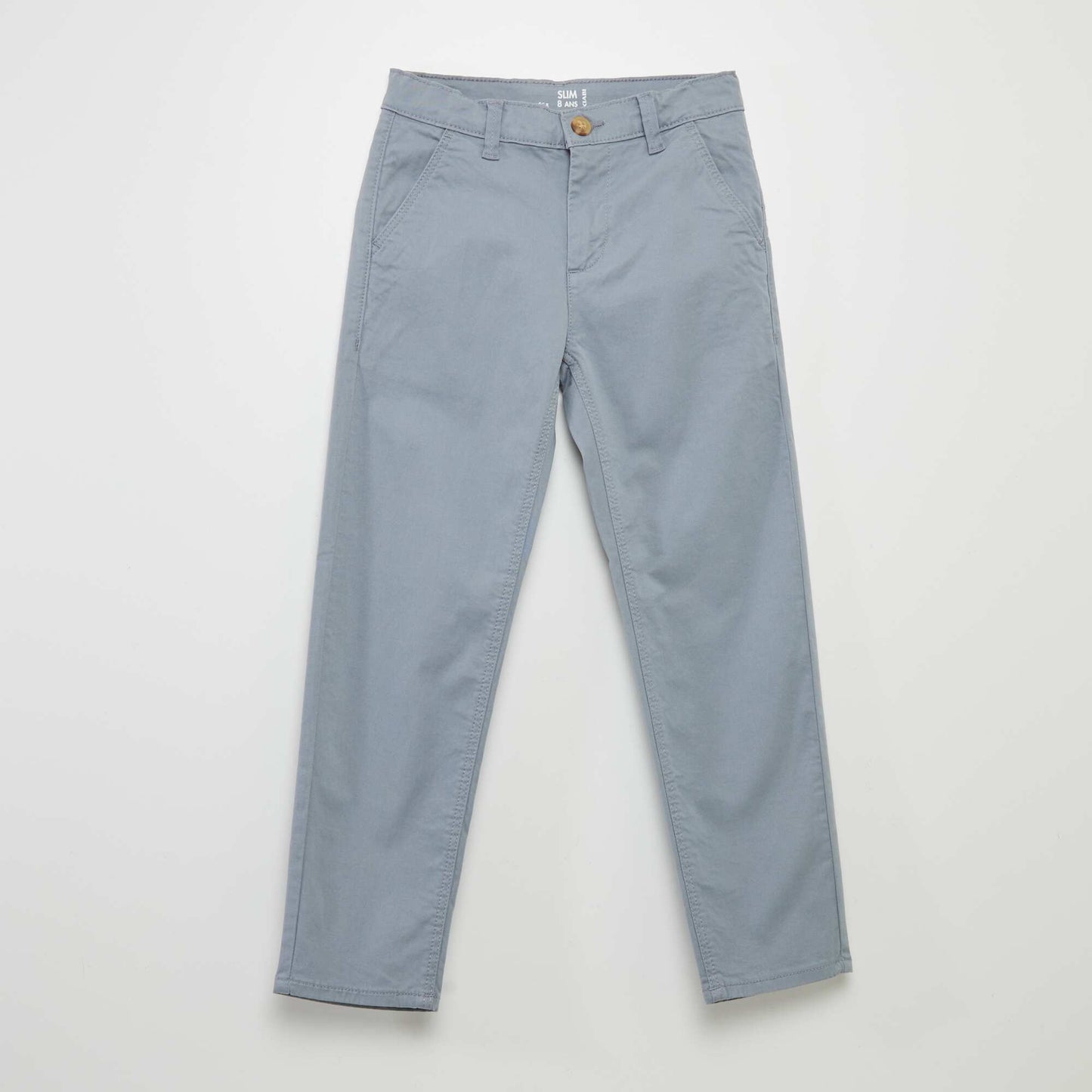 Affichez votre style avec notre pantalon chino slim. \n\n- Pantalon chino \n- Coupe slim \n- Bouton et zip sous patte \n- Passants ceinture \n- Ceinture ajustable \n- Pattes boutonnées intérieur \n- 2 poches italiennes