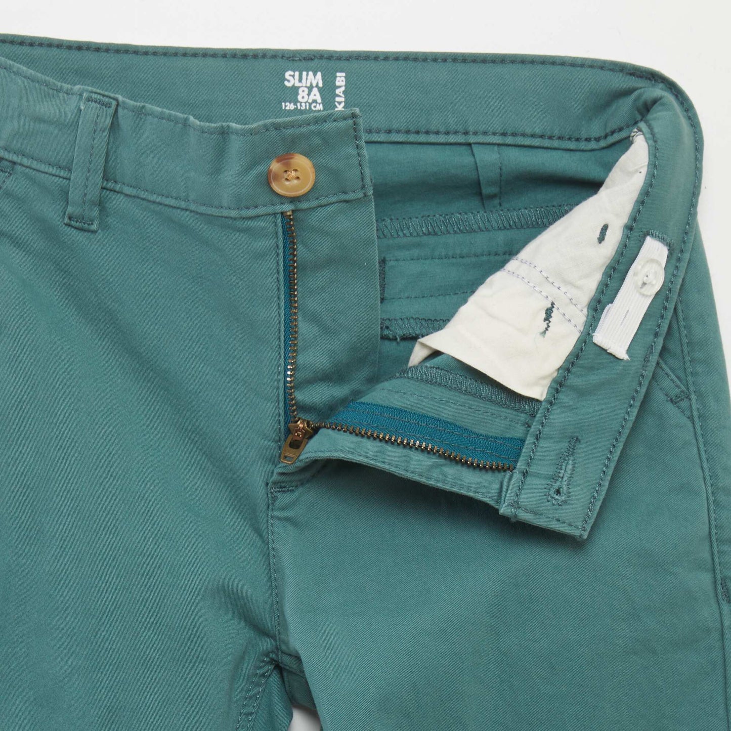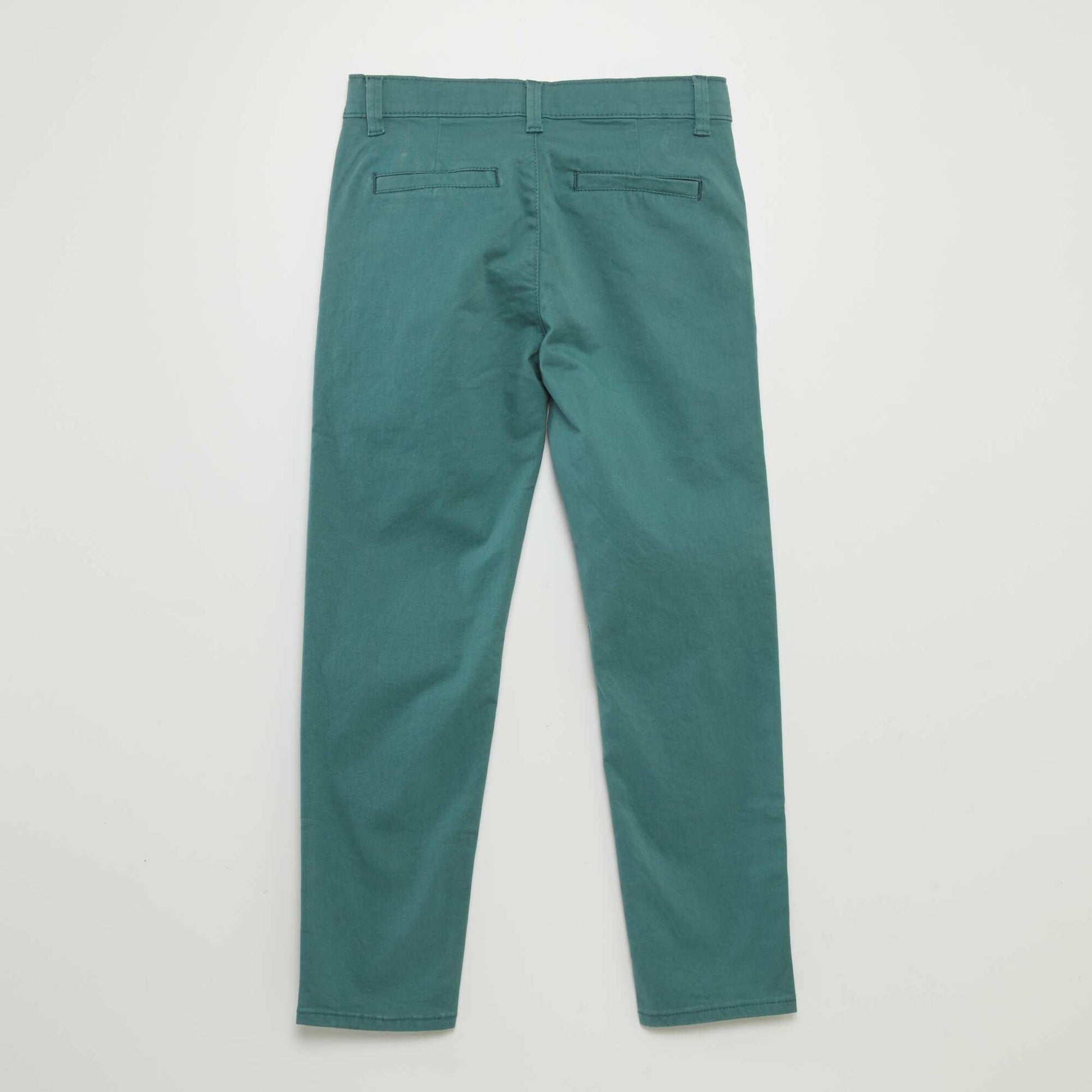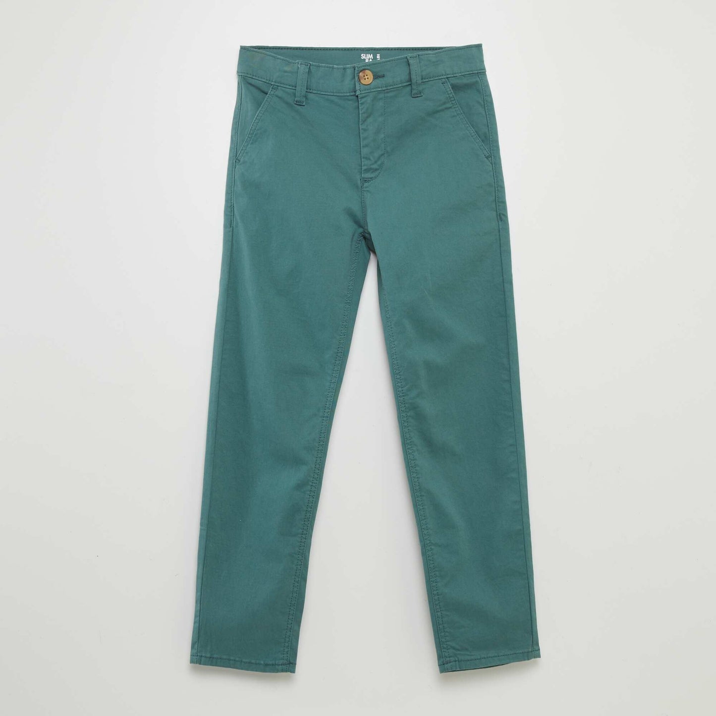 Affichez votre style avec notre pantalon chino slim. \n\n- Pantalon chino \n- Coupe slim \n- Bouton et zip sous patte \n- Passants ceinture \n- Ceinture ajustable \n- Pattes boutonnées intérieur \n- 2 poches italiennes