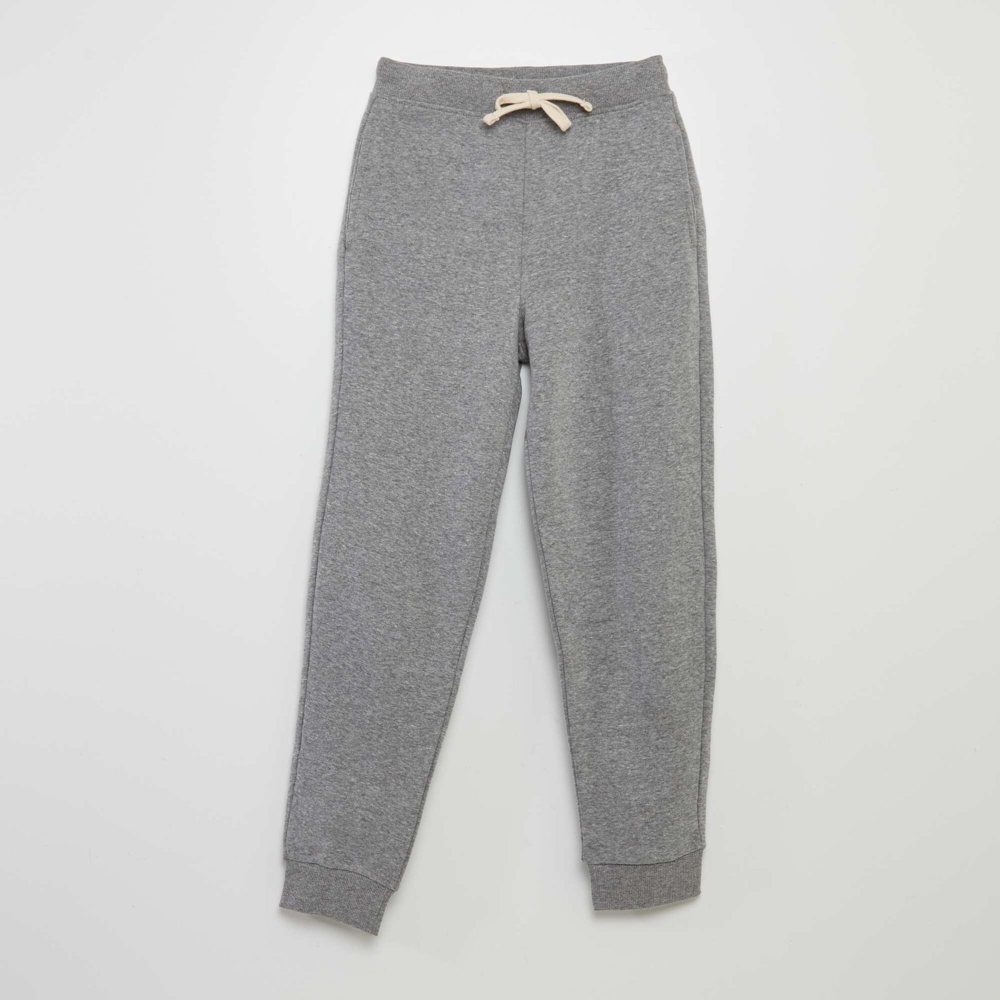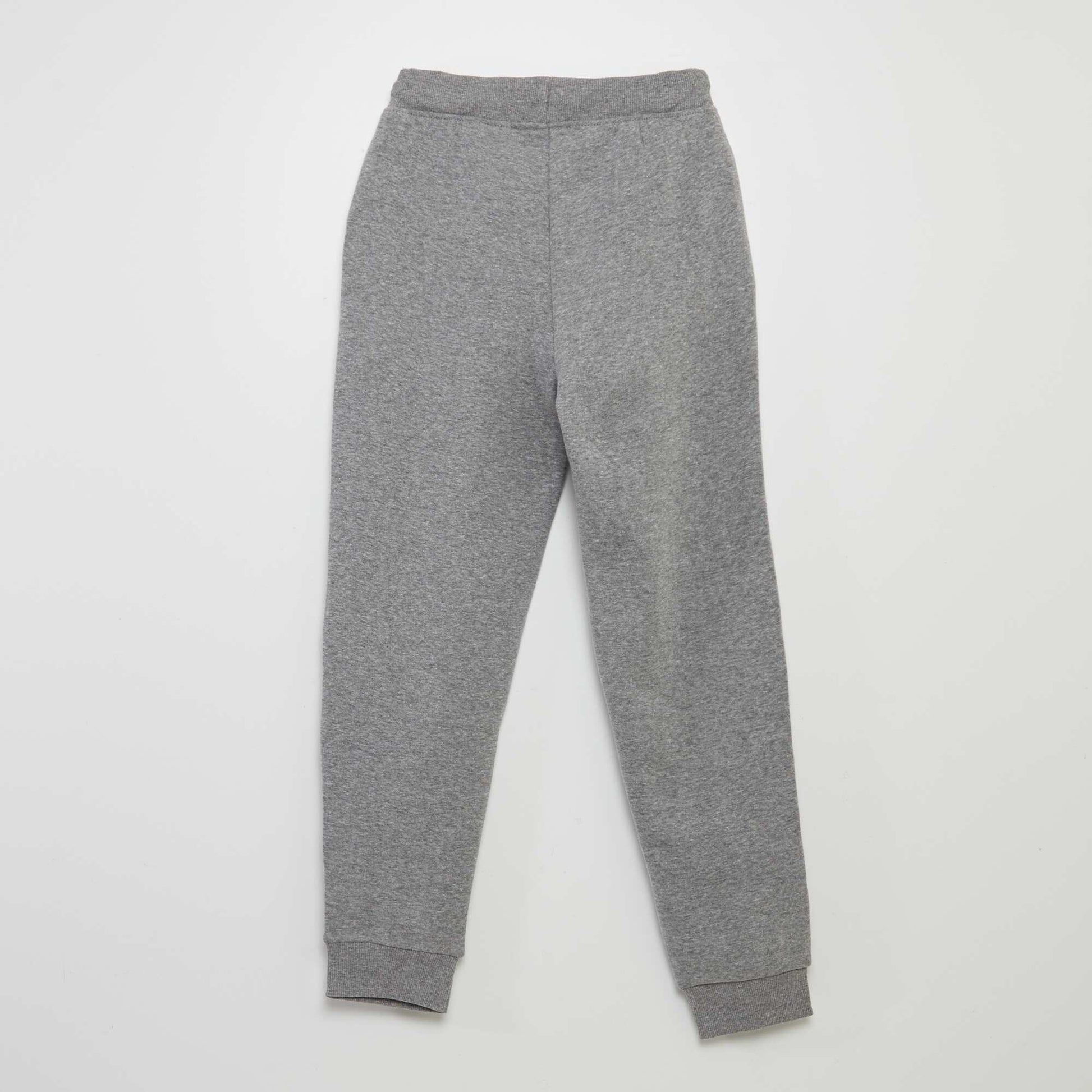 Un jogging uni qu'on va s'arracher ! \n\n- Pantalon de jogging \n- Matière stretch \n- En molleton gratté (chaud et doux) \n- Taille élastiquée \n- Liens coulissants à nouer \n- 2 poches latérales (pas de poche pour les 3/4 ans)\n- Finitions bords-côtes aux bas des jambes
