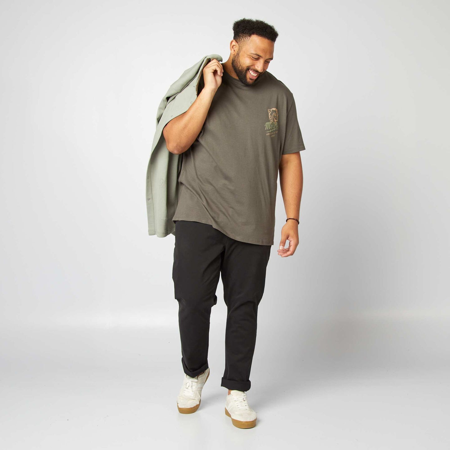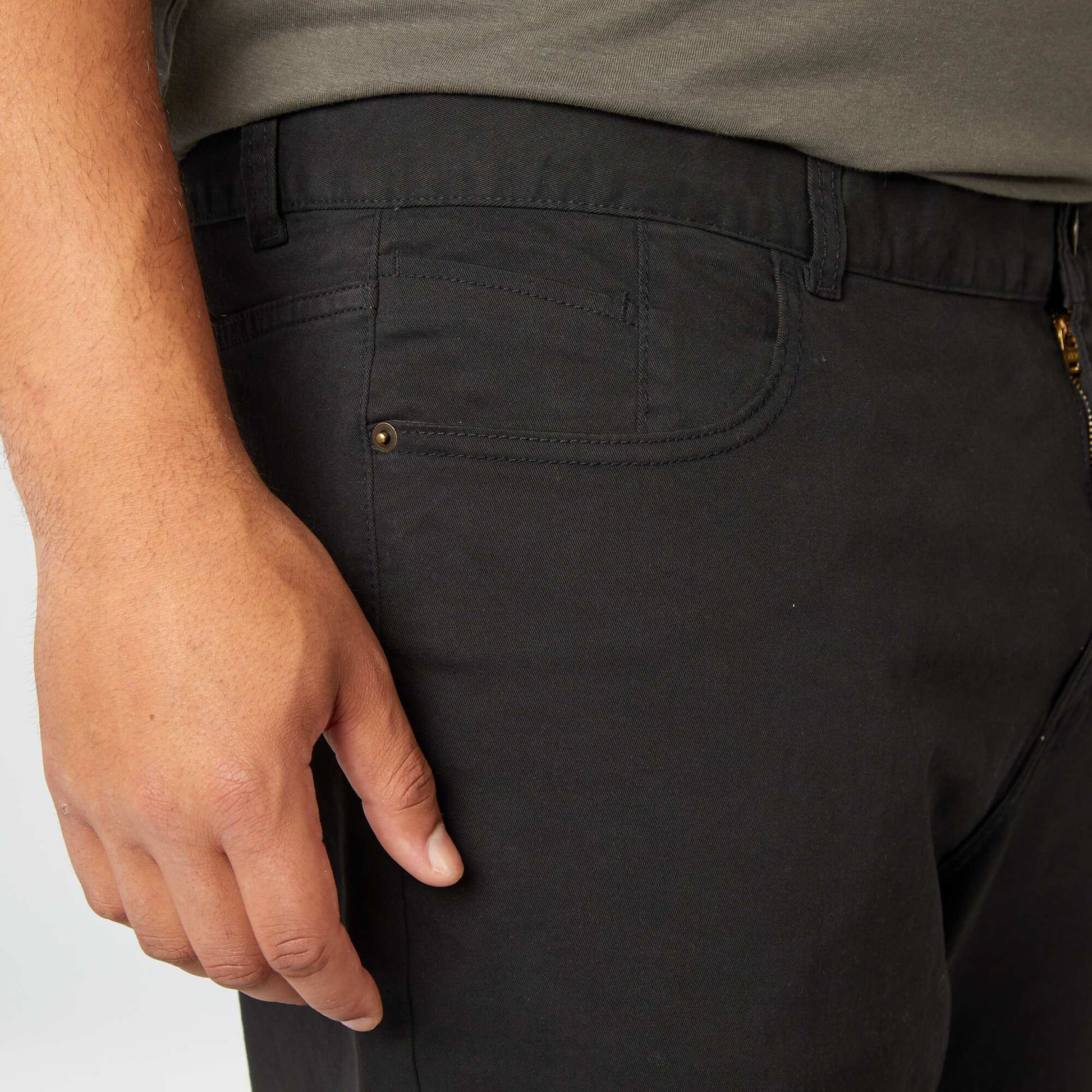 Un pantalon tendance et confortable avec sa matière stretch. \n\n- Pantalon slim en coton \n- Ouverture boutonnée + zip sous patte \n- 2 poches cavalières + 1 poche ticket devant \n- 2 poches plaquées au dos \n- Longueur entrejambe L32 : 78 cm - Choisissez de préférence un pantalon L32 si vous mesurez 1m70-1m75\n- Largeur bas de jambe : 21 cm \n\n- Notre mannequin porte une taille 56