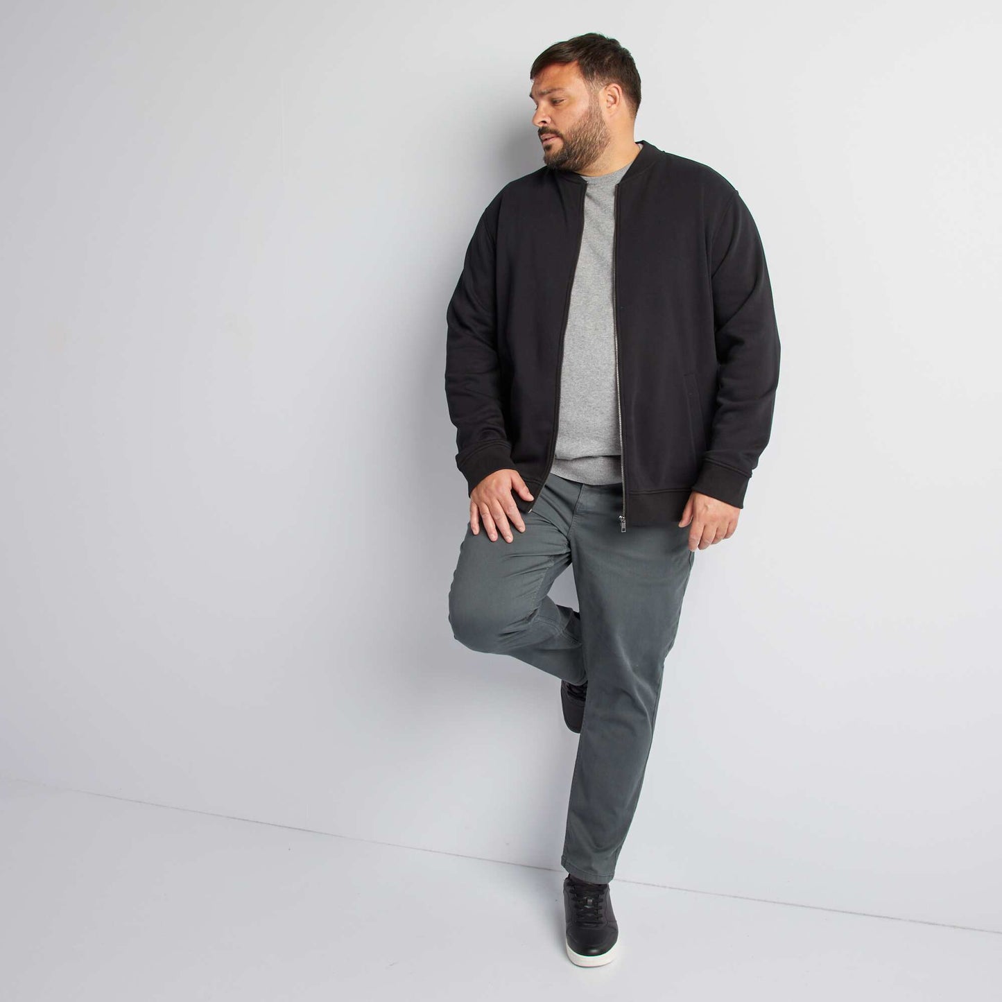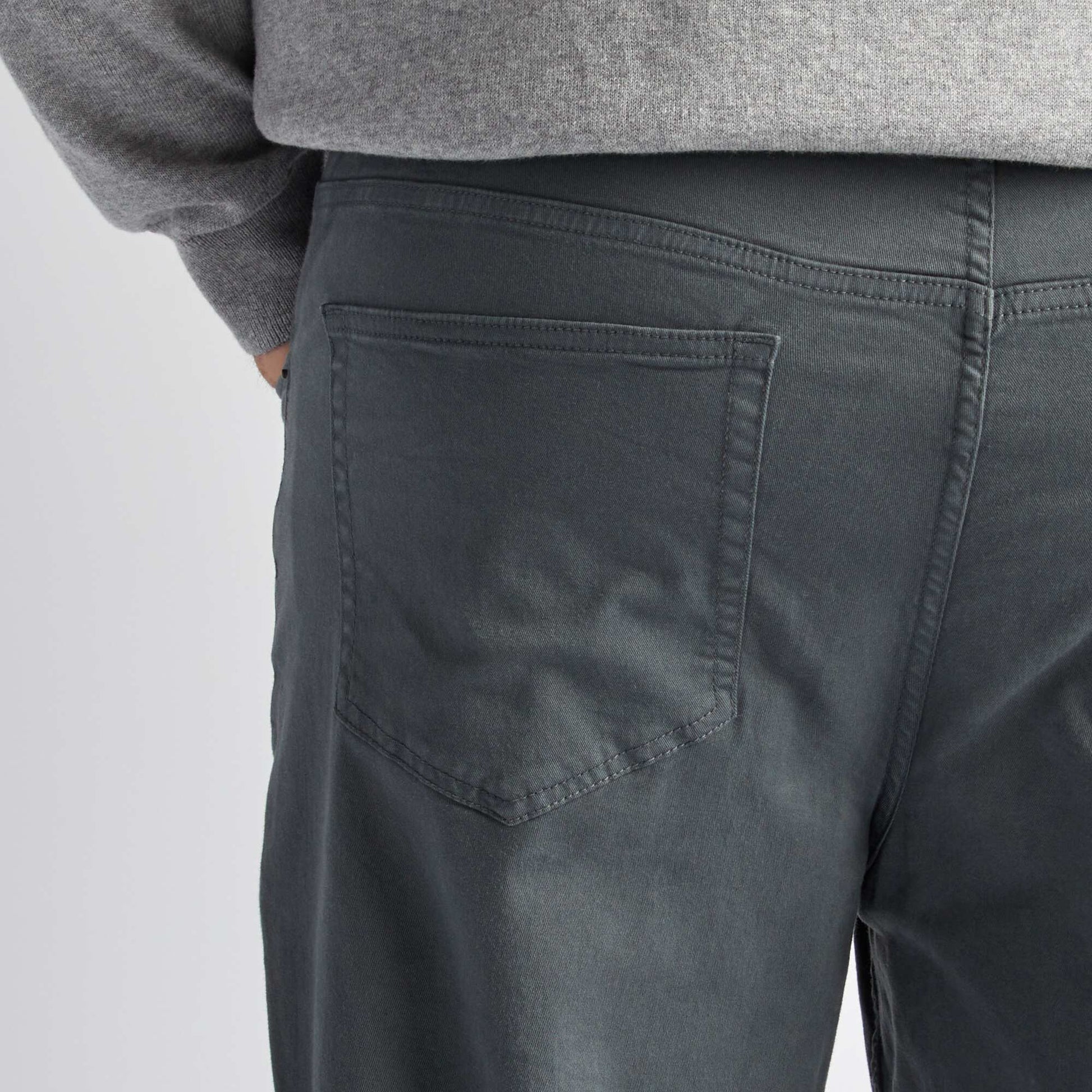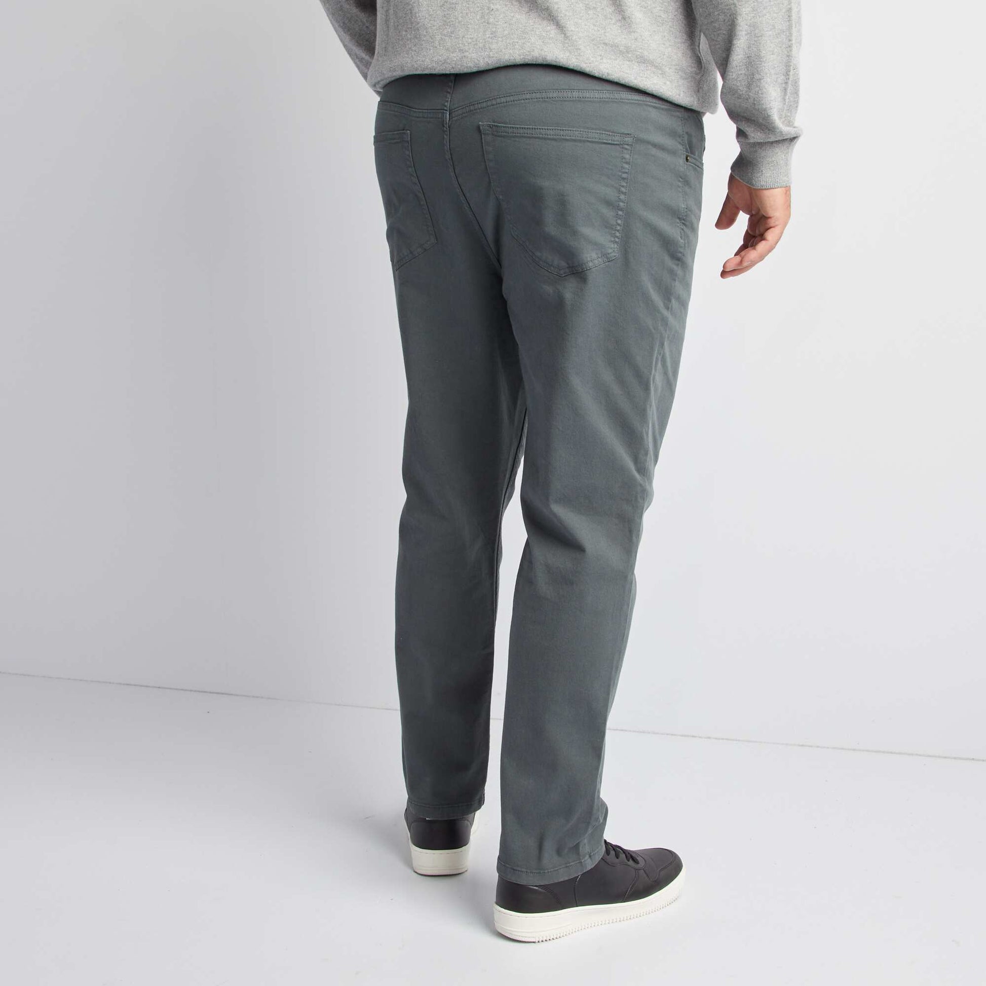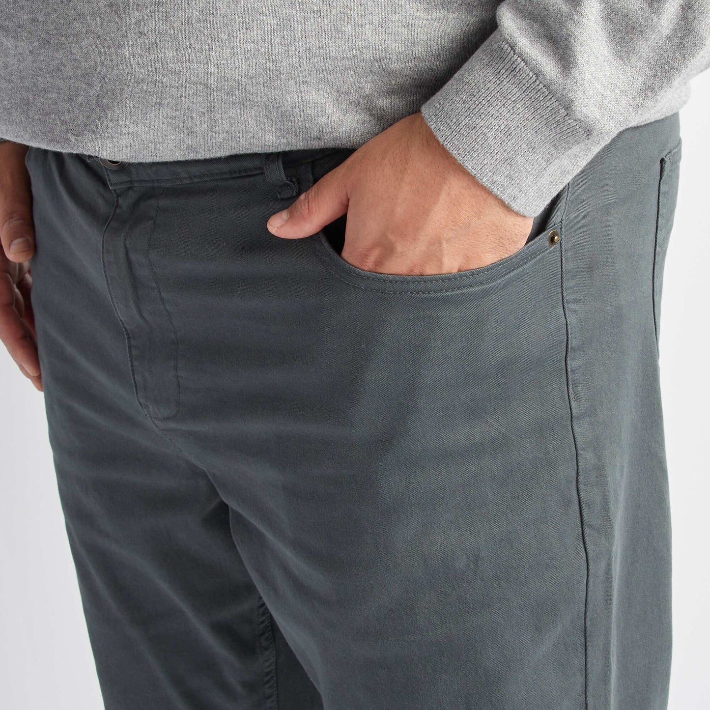 Un pantalon tendance et confortable avec sa matière stretch. \n\n- Pantalon slim en coton \n- Ouverture boutonnée + zip sous patte \n- 2 poches cavalières + 1 poche ticket devant \n- 2 poches plaquées au dos \n- Longueur entrejambe L32 : 78 cm - Choisissez de préférence un pantalon L32 si vous mesurez 1m70-1m75\n- Largeur bas de jambe : 21 cm \n\n- Notre mannequin porte une taille 56