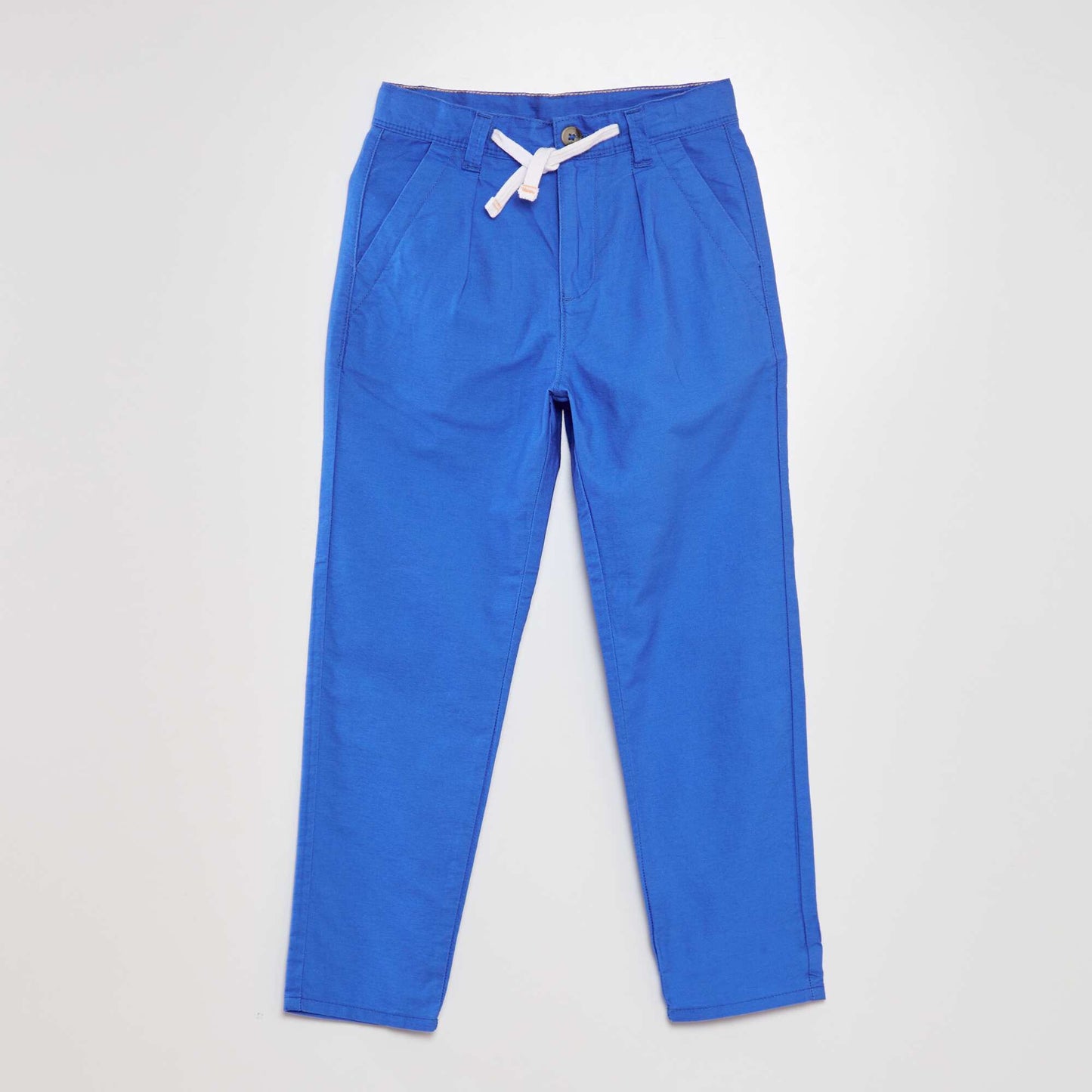 Un pantalon qu'on ajuste facilement à la taille grâce à ses 2 liens de serrage ! - Pantalon slim - Tissu oxford - Passants pour ceinture - Cordons de serrage - Ouverture boutonnée et zippée - 2 poches - 2 poches au dos