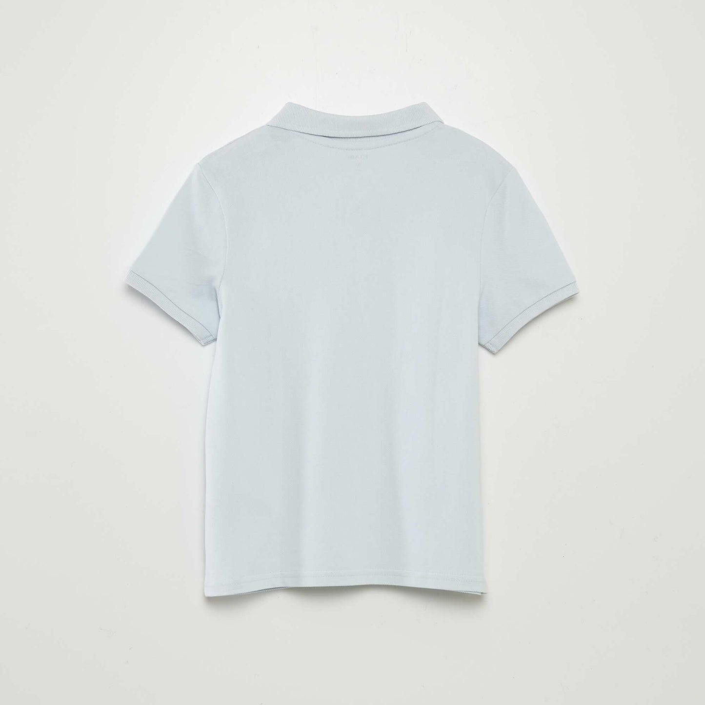 Le polo pour faire comme les grands ! \n\n- Polo uni \n- Maille piquée de coton \n- Manches courtes \n- Col polo avec boutons \n- Finitions bords-côtes