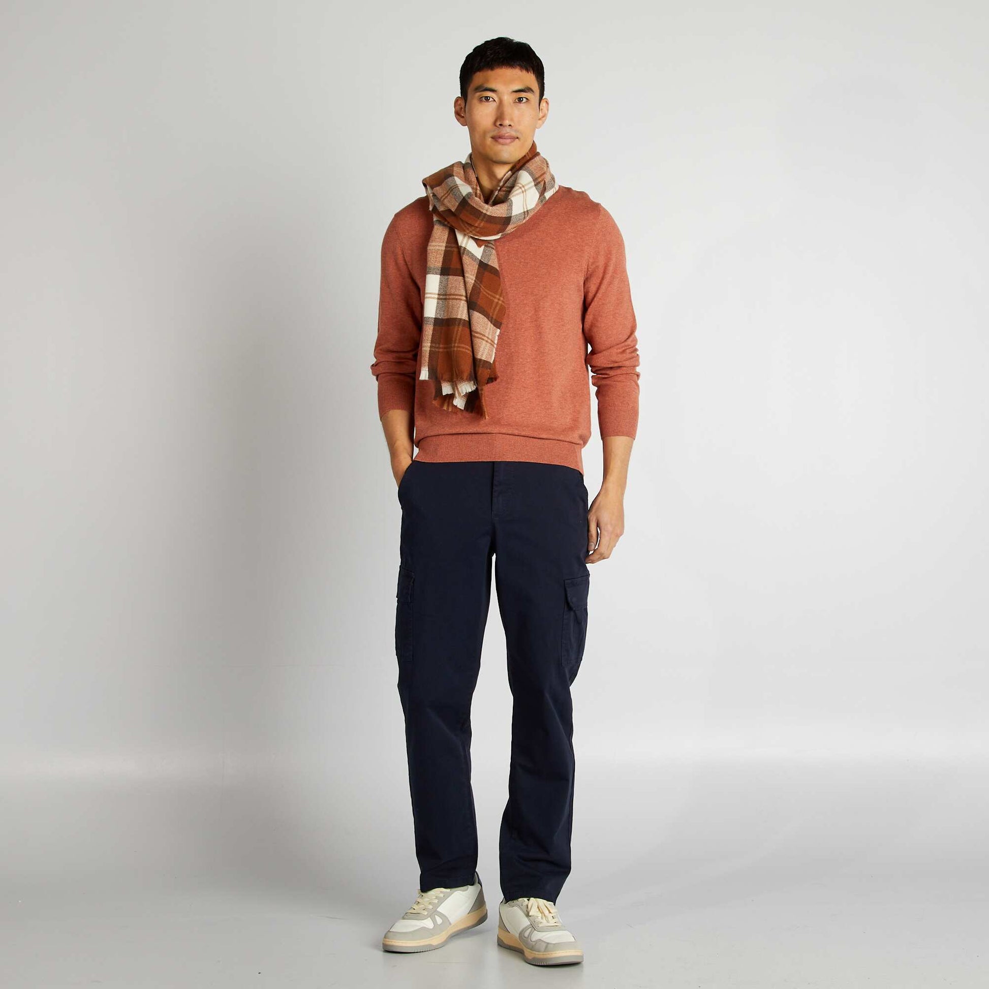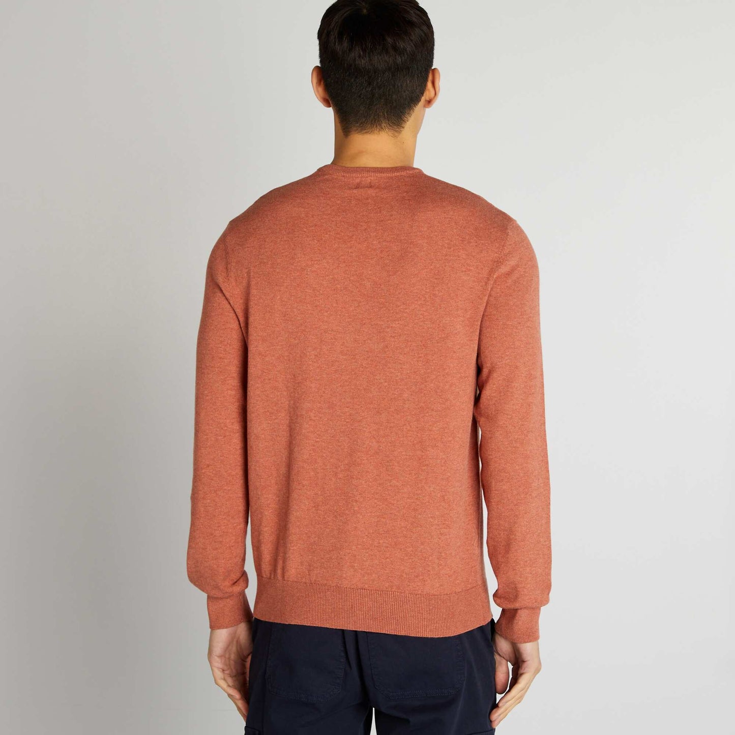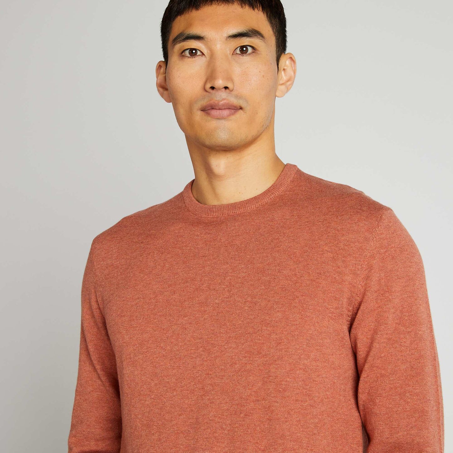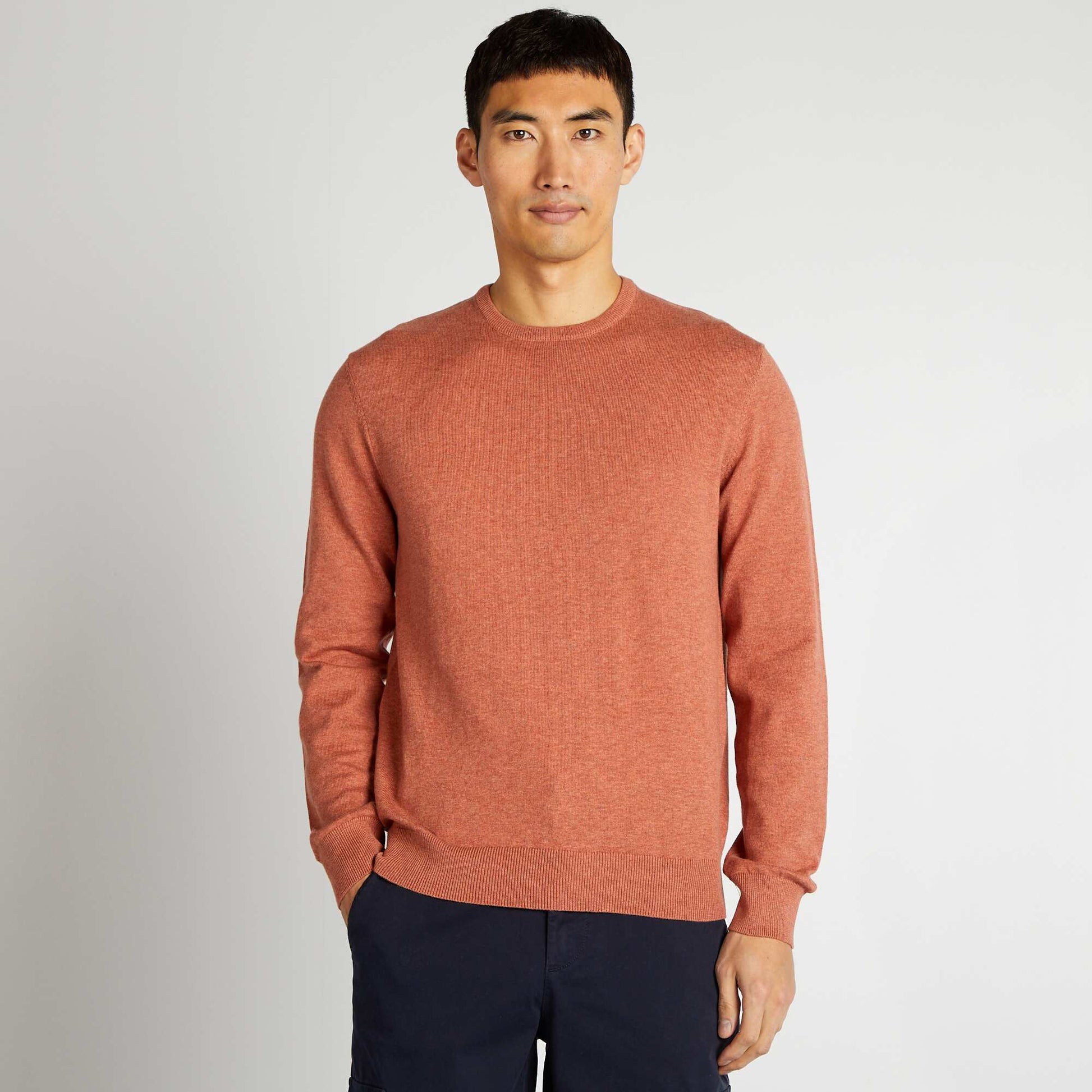 Confortable et facile à associer, un excellent basique qui fera vite partie de vos préférés. \n\n- Pull en maille fine jauge \n- Regular fit / coupe droite \n- Coton majoritaire \n- Col rond \n- Manches longues \n- Finition bord-côte à l'encolure, à la base et aux poignets \n- Longueur dos : 70 cm \n\n- Notre mannequin porte une taille M et mesure 1m87