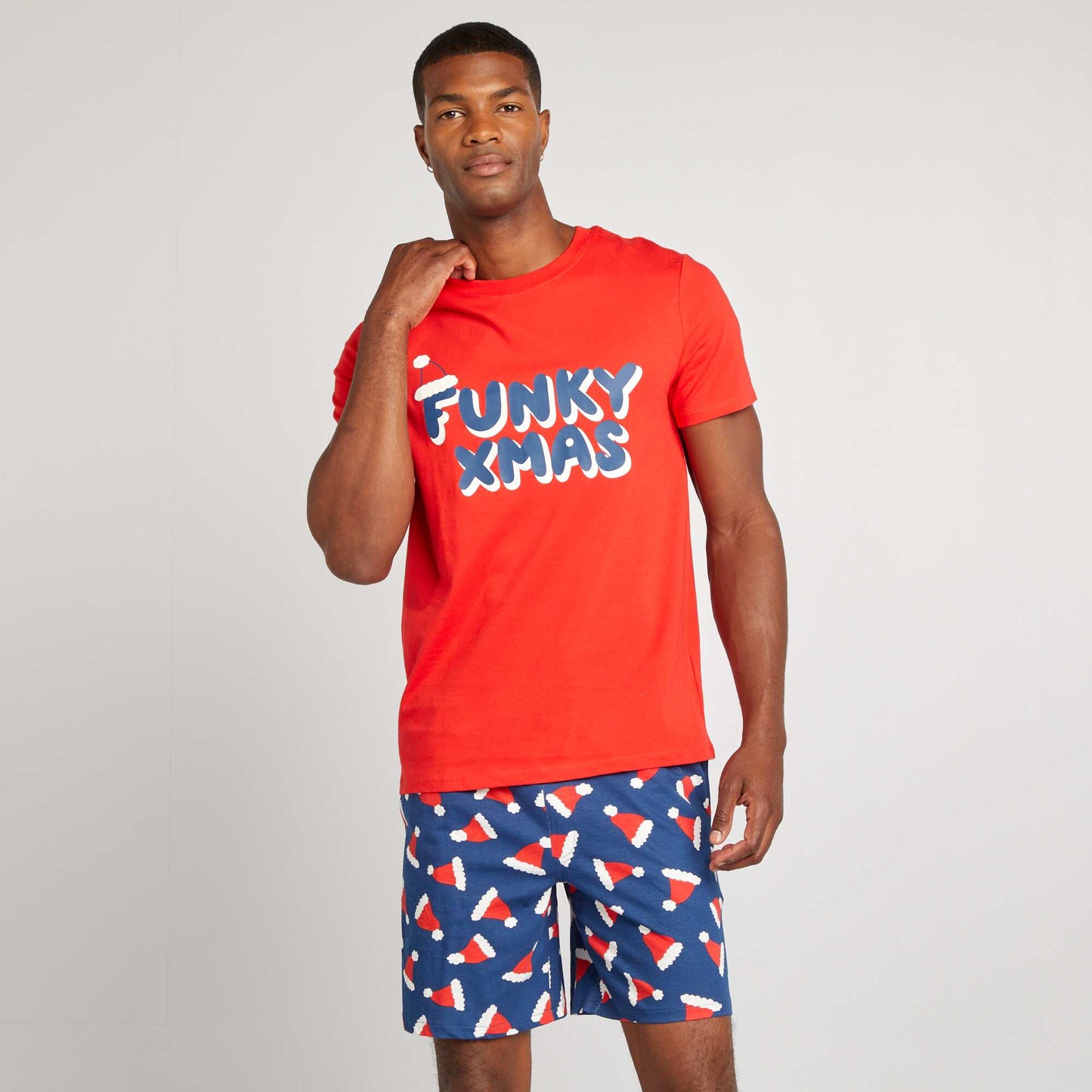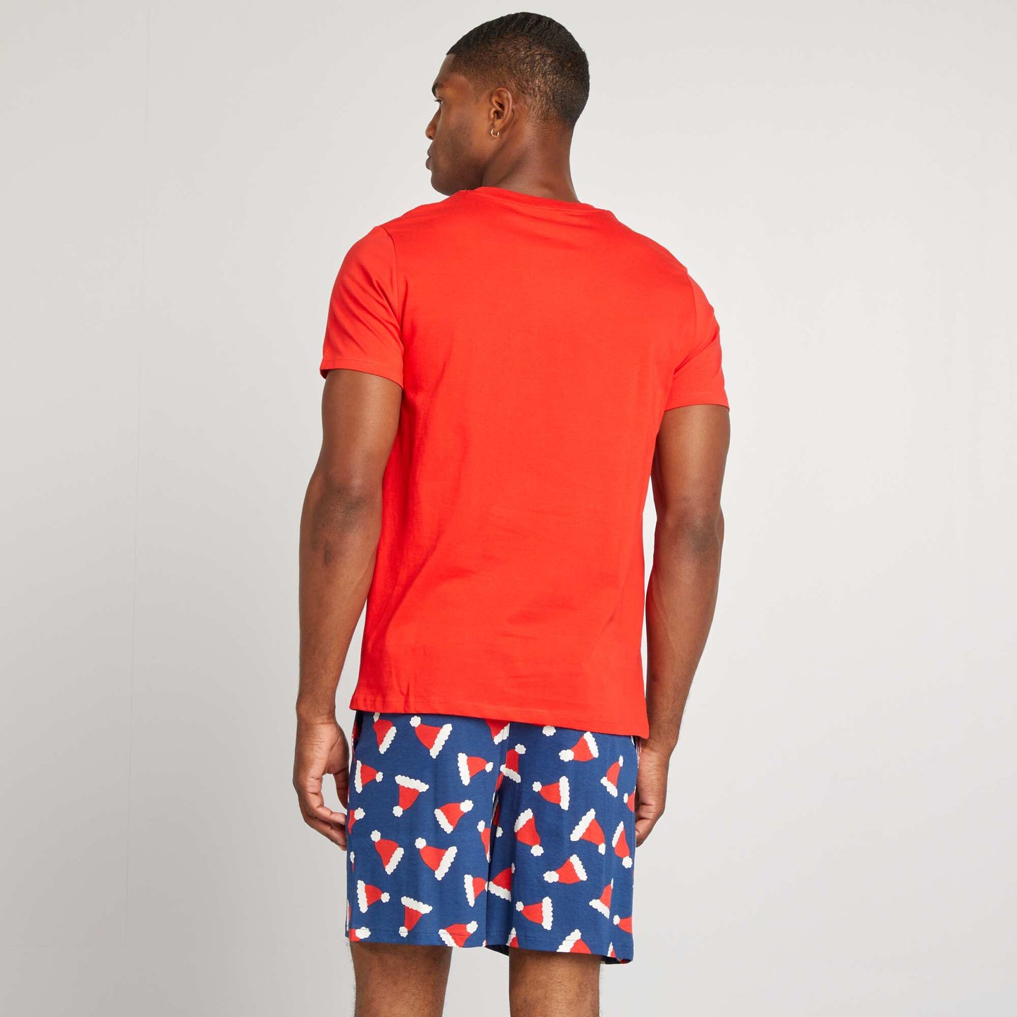 Prêt pour Noël avec notre pyjama short. - Pyjama de Noël 2 pièces - En jersey - T-shirt à manches courtes - Col rond - Imprimé message devant - Longueur dos : 70 cm environ - Short assorti - Taille élastiquée - Imprimé bonnet de noël all over - Longueur entrejambe : 18 cm environ - Largeur bas de jambe : 30 cm environ - Notre mannequin porte une taille M et mesure 1m85