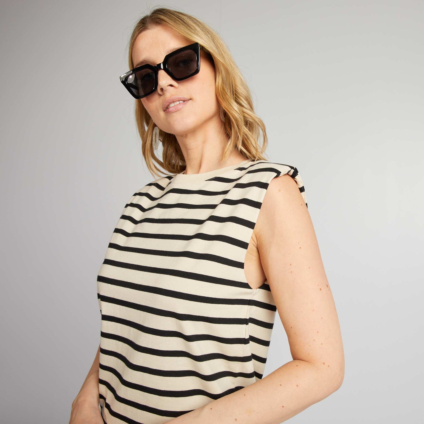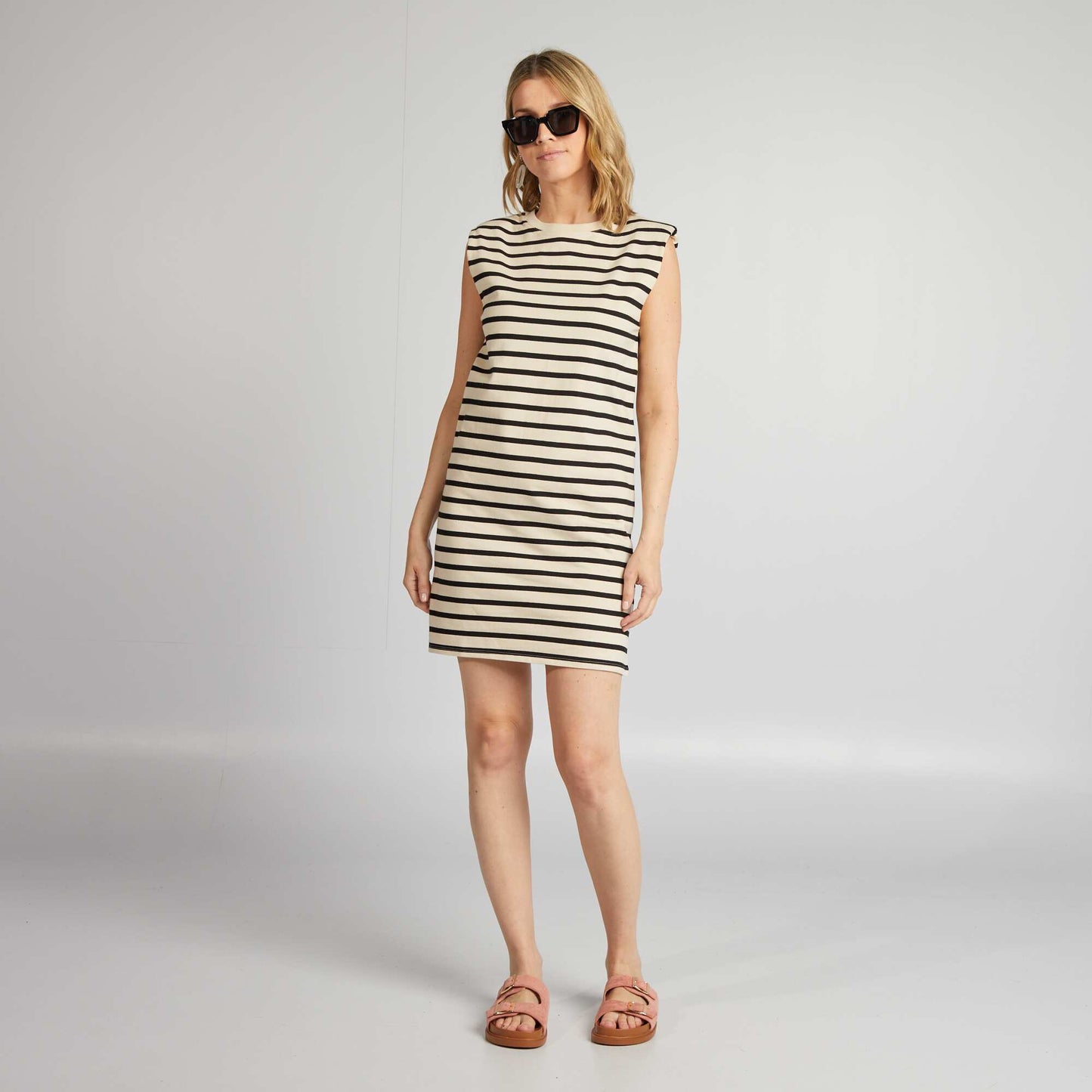 Pour un style cool et détente, ajoutez-y une paire de baskets. - Robe courte à épaulettes - En coton - Col rond - Sans manches - Imprimé à rayures - Longueur du dos : 86 cm - Notre mannequin porte une taille S et mesure 1m75