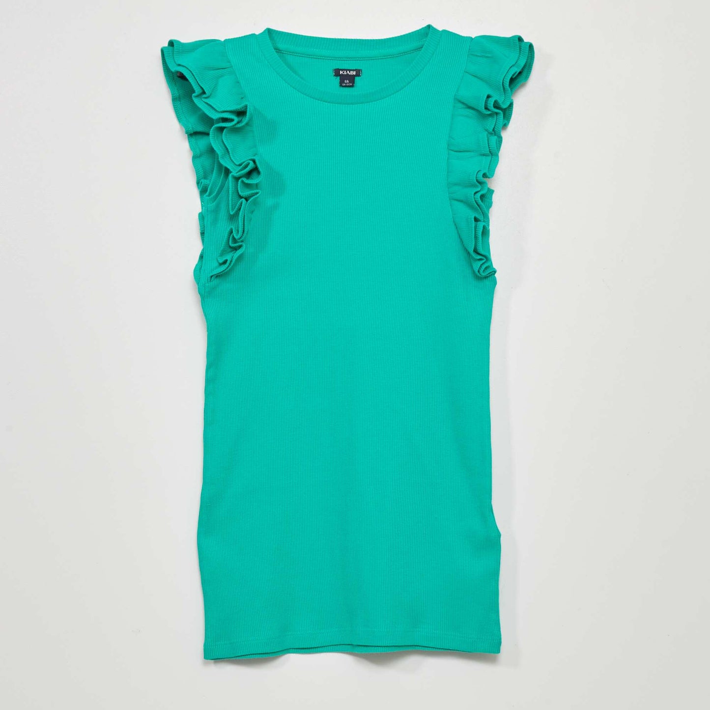 Une robe côtelée et colorée ! - Robe en maille côtelée - Encolure ronde - Sans manches - Volants aux épaules