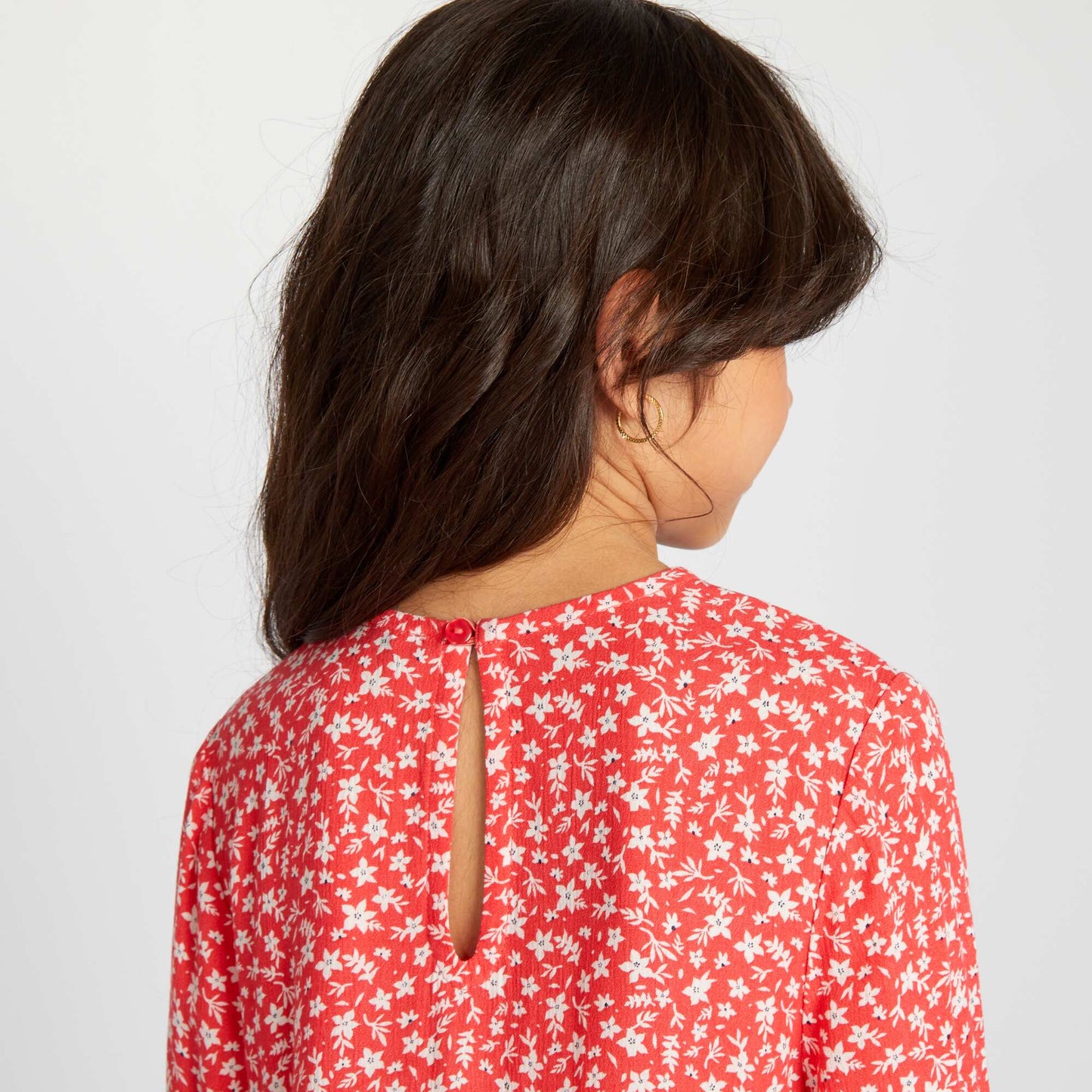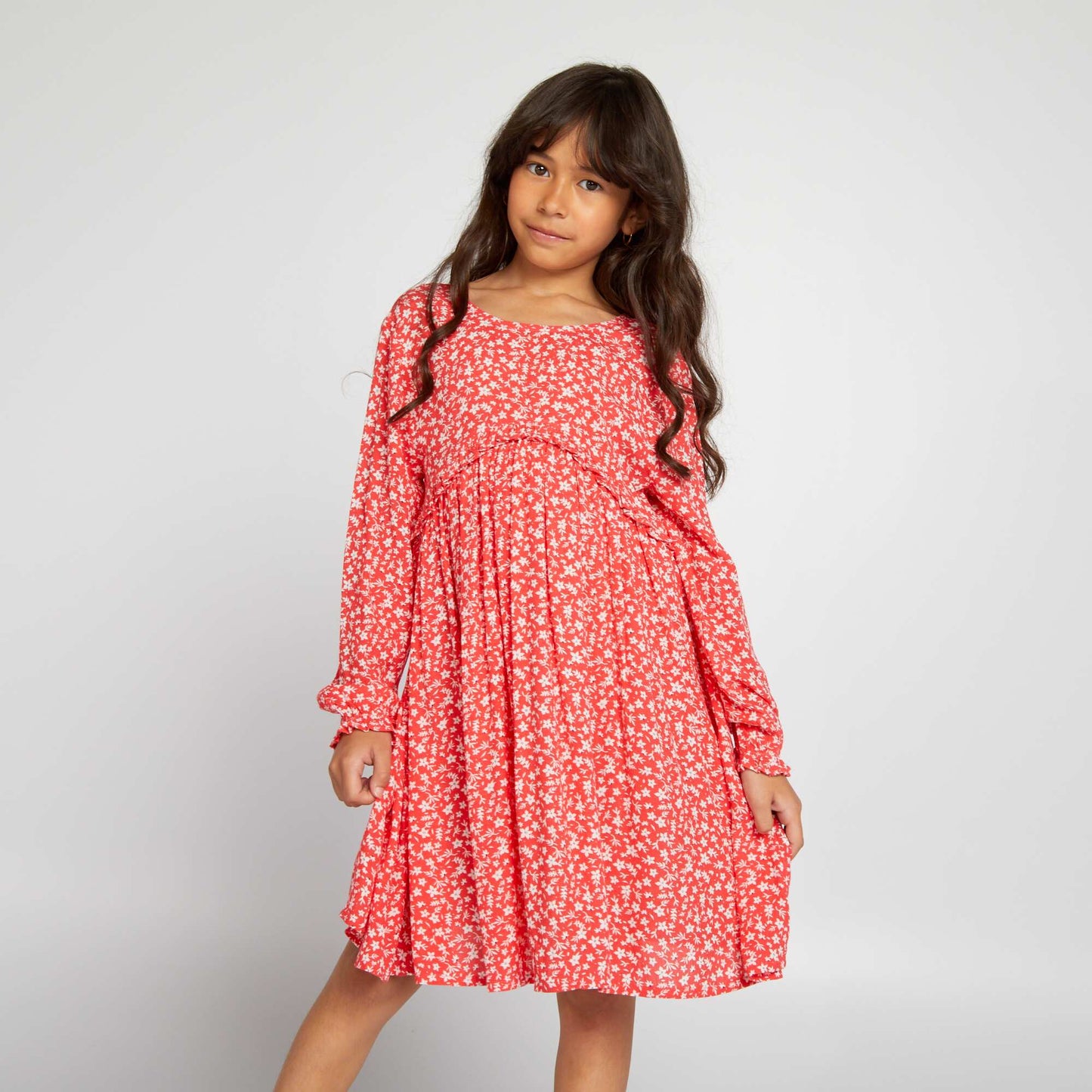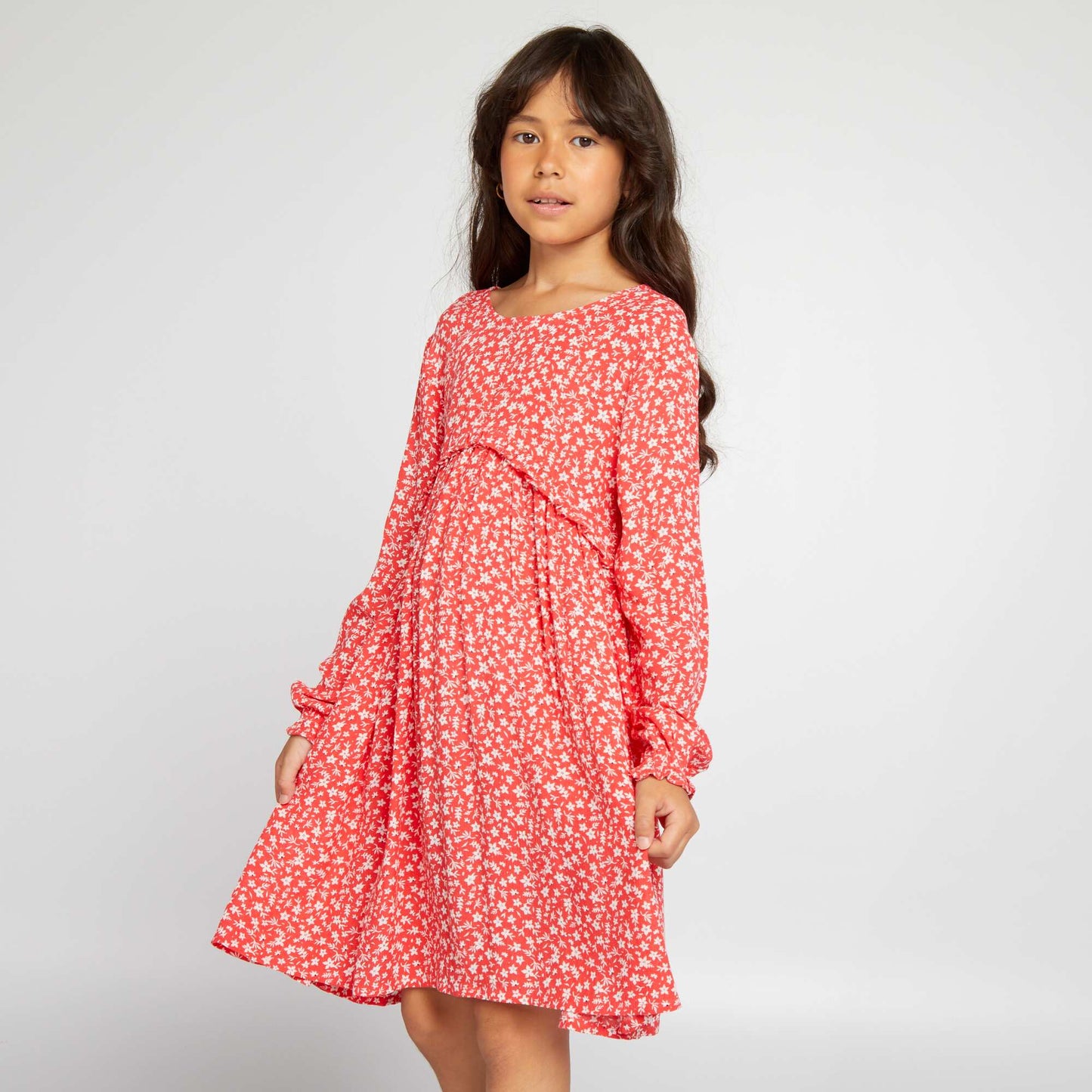 Pour une tenue moderne et printanière optez pour cette robe fluide et légère ! - Robe fluide - Col rond - Manches longues - Taille élastiquée - Ouverture goutte d'eau au dos - Empiècement volanté devant - Imprimé 'fleuri' all-over