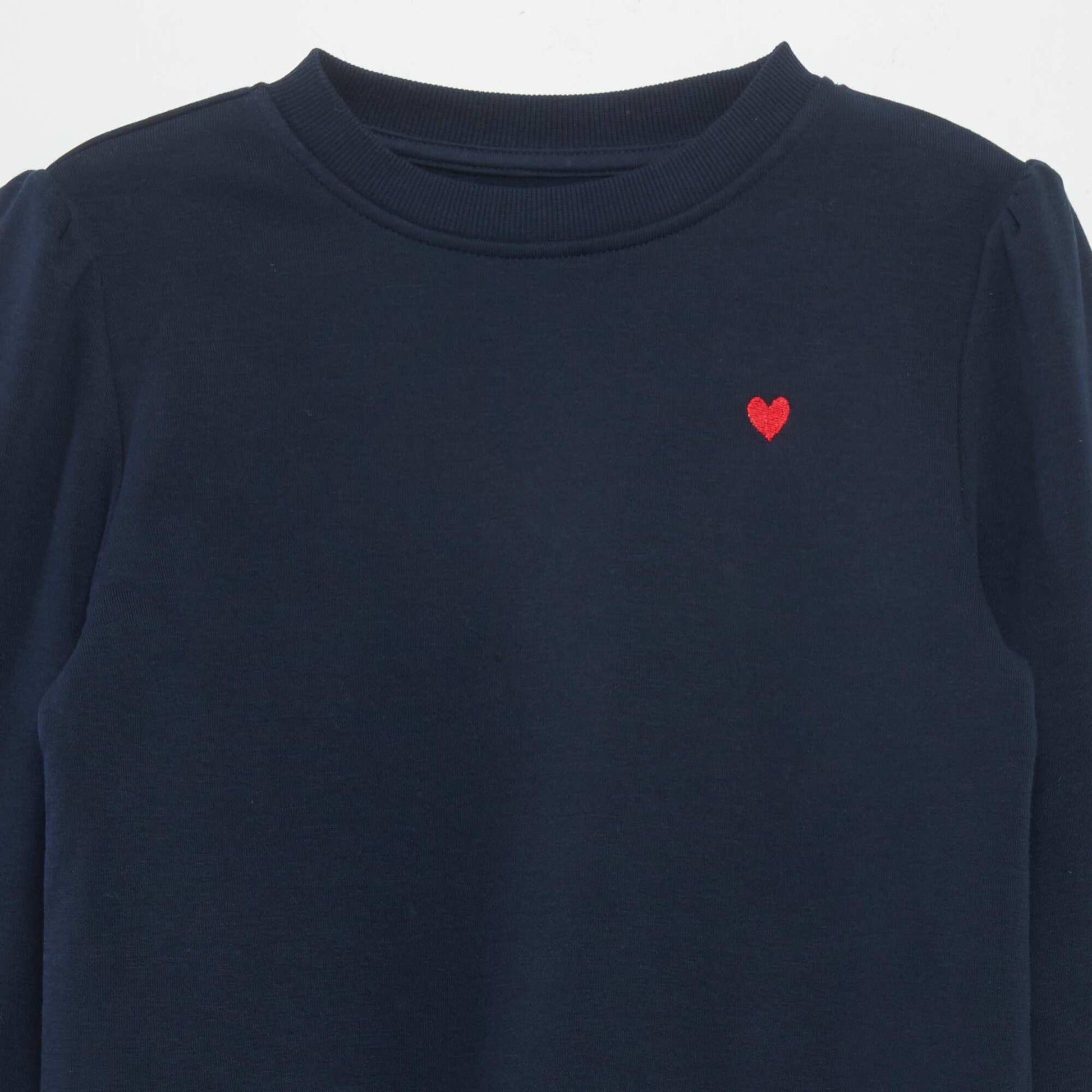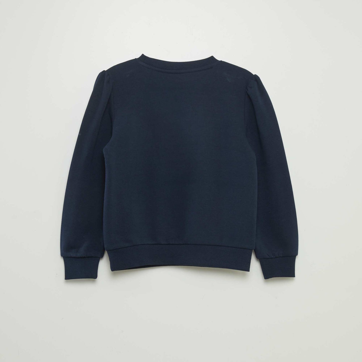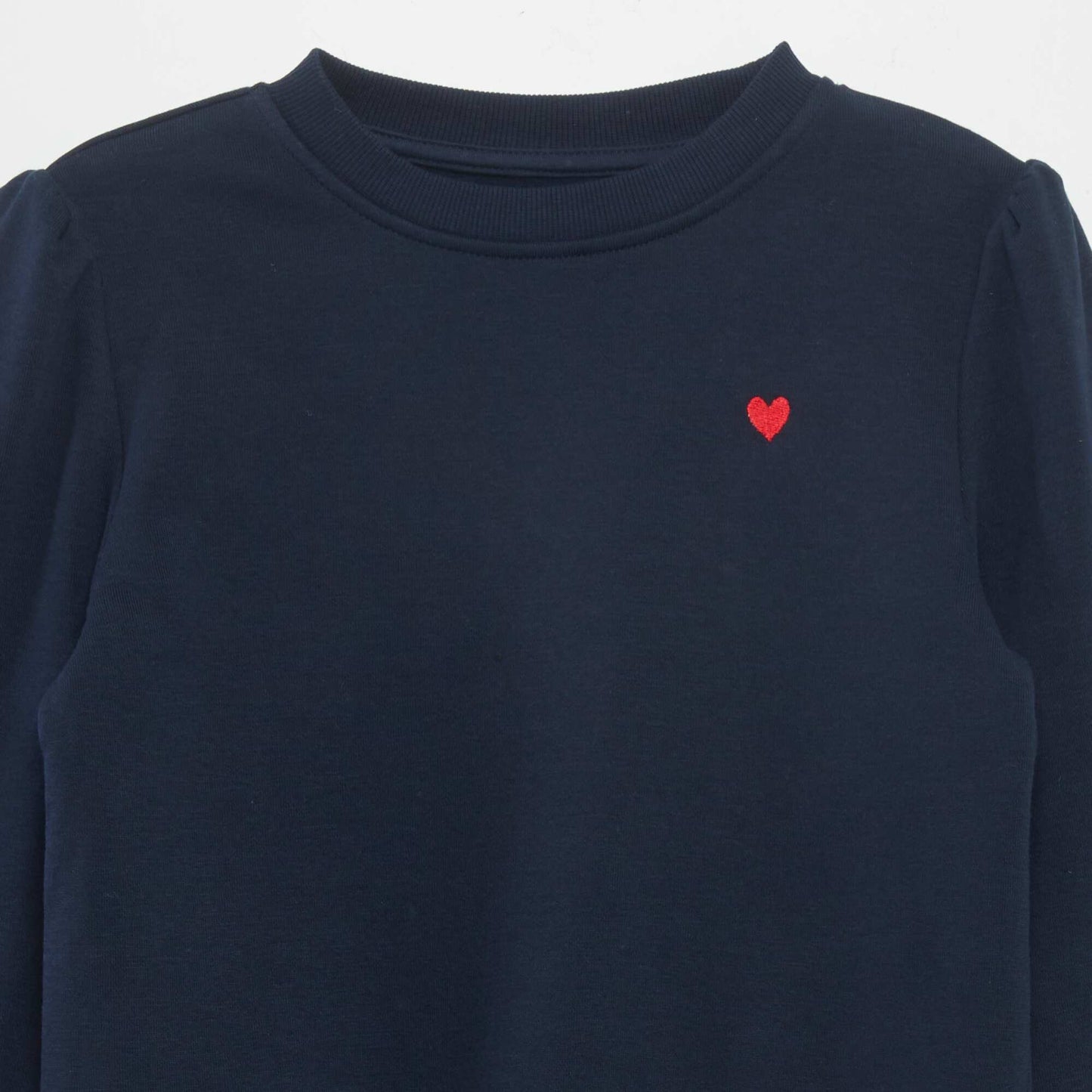 Sois la reine du confort avec ce sweat en molleton trop doux !\nCoucou les filles ! On a déniché le sweat ultime pour te la couler douce tout en restant stylée. Imagine-toi : t'envelopper dans un câlin de douceur à chaque fois que tu le portes. Ce sweat en molleton tout gratté, en coton tout doux, va te faire craquer. T'auras même plus envie de le quitter, c'est te dire ! Il a tout pour te faire passer des journées confort-chic, que ce soit pour chiller à la maison, en cours ou en sortie.\n\n- Du molleton tout doux : Tu vas sentir la douceur dès que tu l'enfiles.\n- Col rond tout mignon \n- Manches longues à fronces aux épaules : Les détails qui tuent ! Des petites fronces aux épaules pour une touche d'élégance en plus. So cute !\n- Inscription à la poitrine : trop mignon \n\nConseil mode / association:\nBon, c'est simple comme bonjour. Pour un look casual cool, associe ce sweat avec ton jean préféré et des sneakers blanches. T'auras ce petit côté décontracté qui fait craquer tout le monde. Si t'as envie de le pimper un peu plus, essaie de le glisser dans une jupe taille haute avec des bottines. C'est l'effet waouh assuré, sans te prendre la tête !