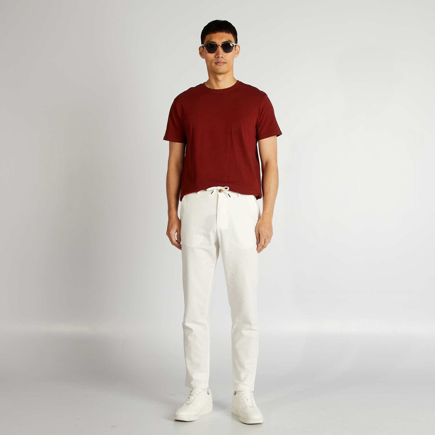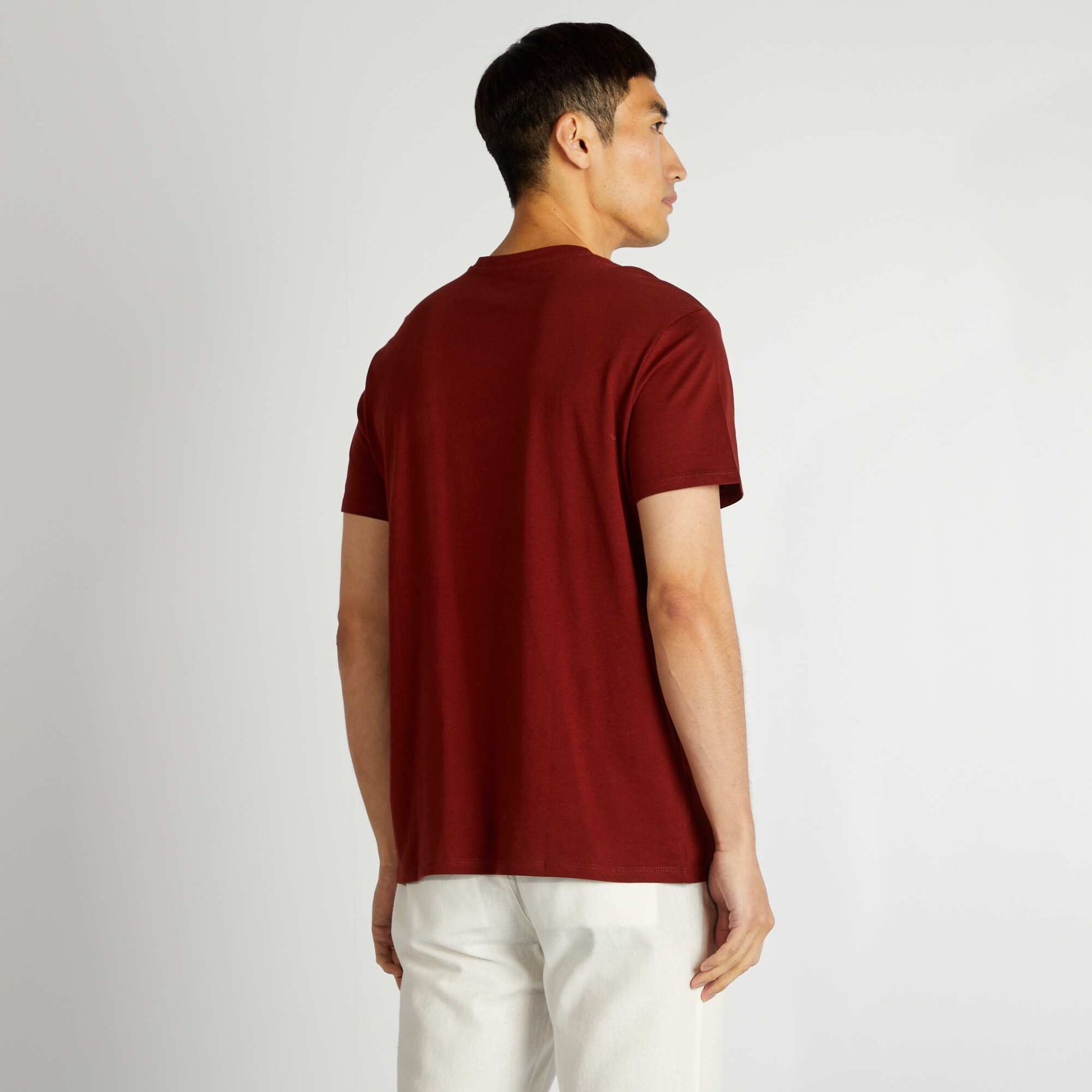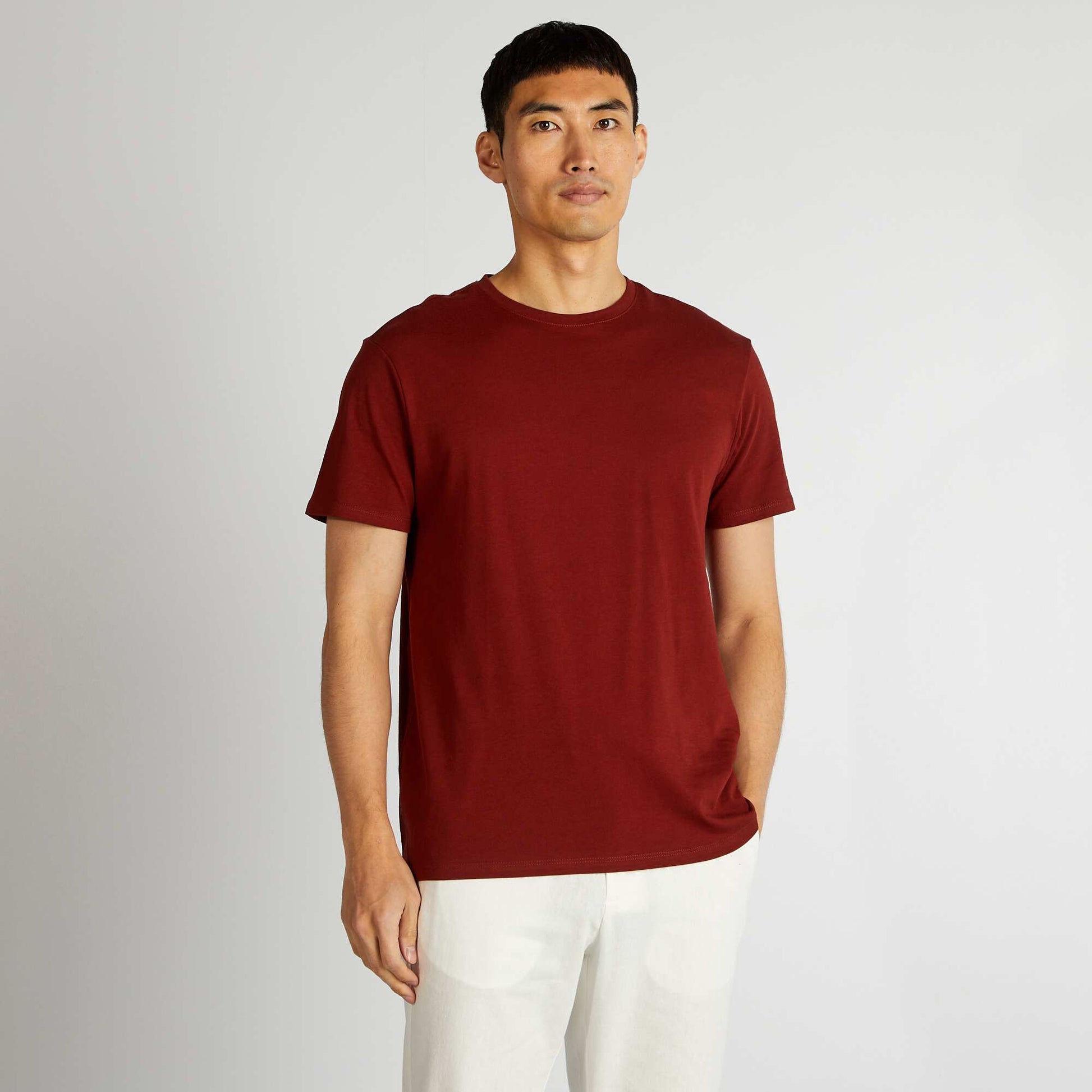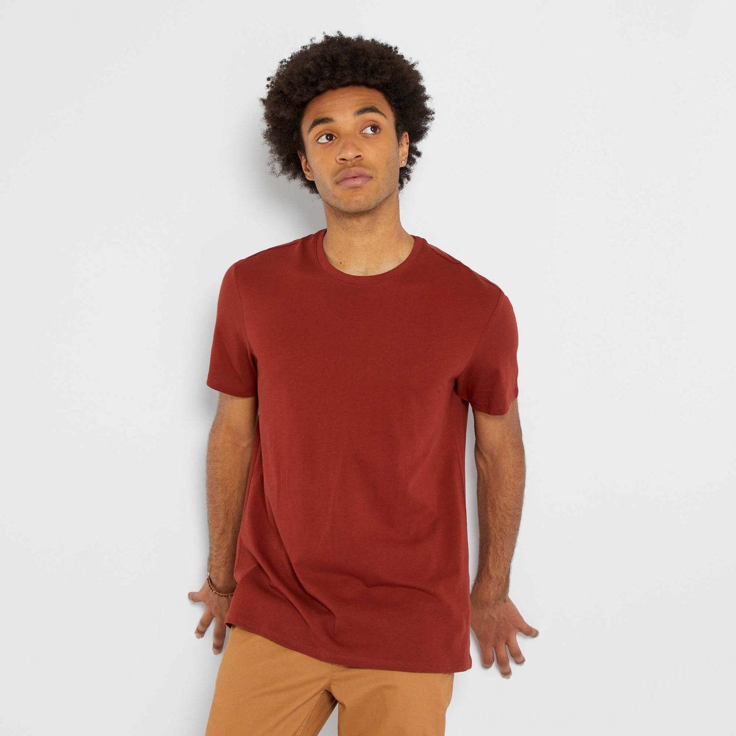 Best sellers* : L'incontournable T-shirt basique. Celui qui s'associe aussi bien avec un jean qu’un pantalon plus habillé. \nLe basique essentiel à toute garde-robe masculine se réinvente pour vous offrir le meilleur. Doux, confortable et conçu pour les hommes modernes, ce tee-shirt en coton uni à col rond est l'allié idéal pour une allure tendance en toute simplicité. Avec sa coupe droite, il saura vous mettre en valeur, quelle que soit l'occasion.\n\n- Tee-shirt en maille jersey \n- Col rond : le classique indémodable\n- Manches courtes : idéales pour toutes les saisons\n- Coupe droite : convient à toutes les morphologies\n- Couleur unie \n- Longueur dos : 72 cm \n\nNotre mannequin porte une taille M et mesure 1m87\n\nConseil Mode / Association:\nVoici quelques idées pour t'inspirer :\n- Look Casual Quotidien : Associe-le avec un jean slim et des baskets blanches pour un look casual intemporel. N'hésite pas à ajouter une casquette pour une touche streetwear.\n- Look Urbain Chic : Porte-le sous une veste en denim et un chino pour un ensemble urbain élégant. Ajoute des bottines en cuir pour un look sophistiqué, mais décontracté.\n- Style Estival Décontracté : Pour les journées ensoleillées, marie-le avec un short en lin et des espadrilles. Les lunettes de soleil complèteront ce look estival et relax.