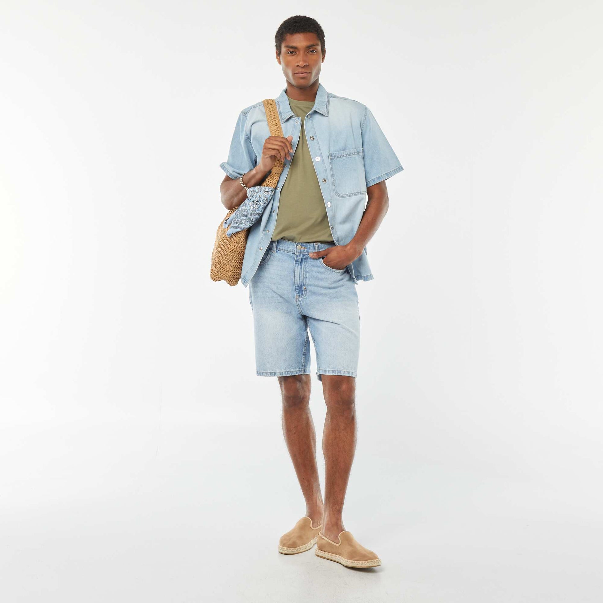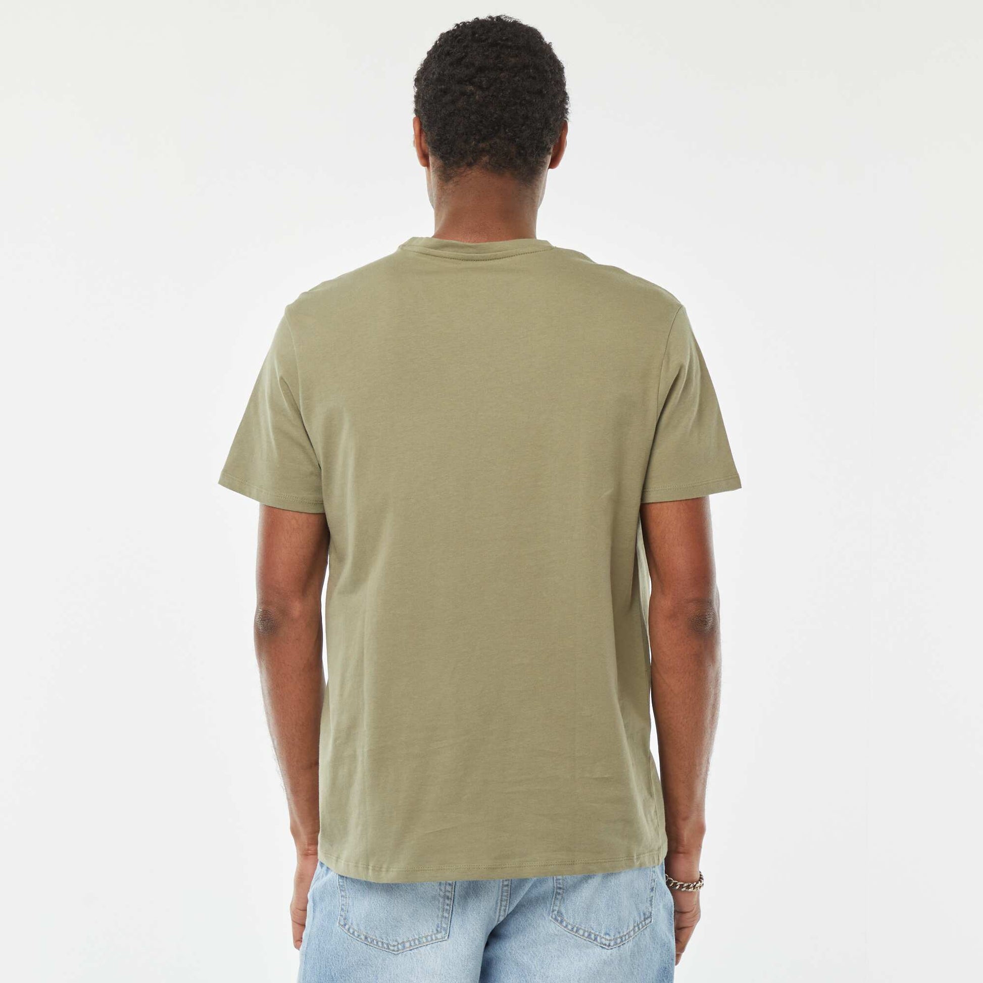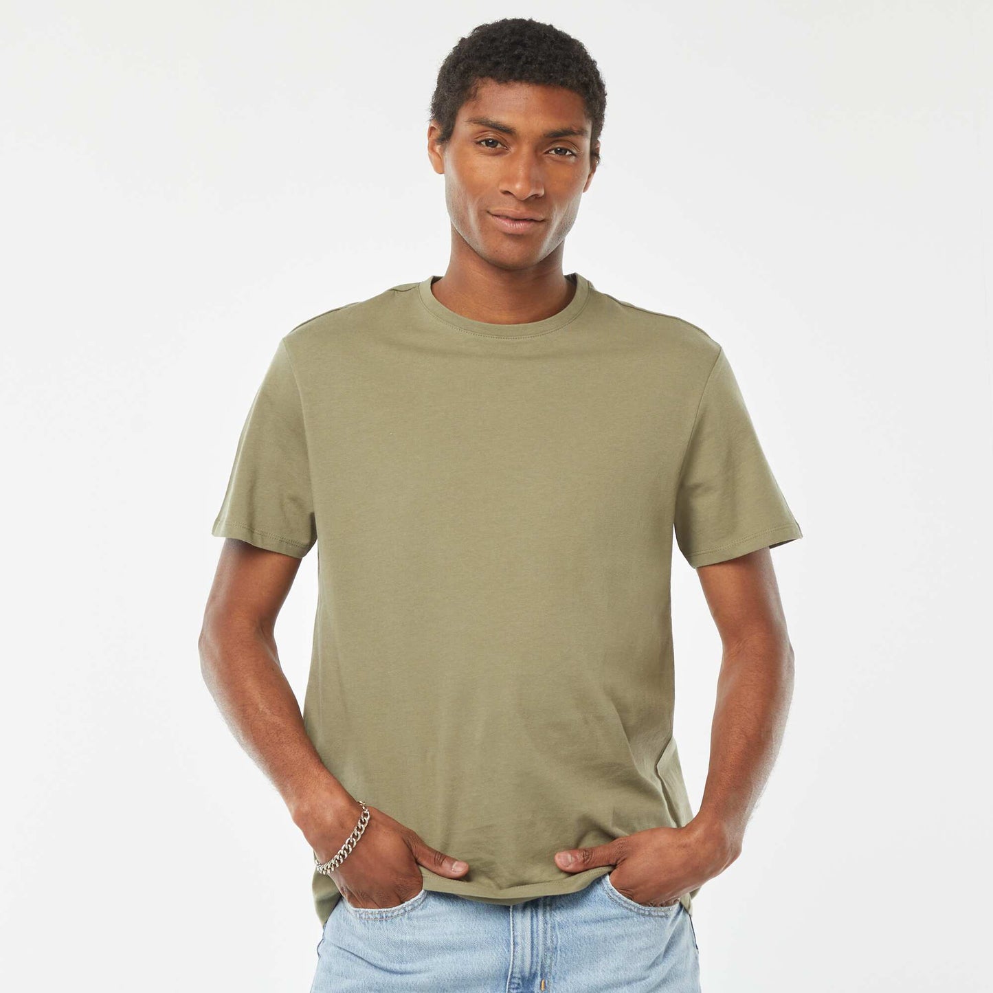 Best sellers* : L'incontournable T-shirt basique. Celui qui s'associe aussi bien avec un jean qu’un pantalon plus habillé. \nLe basique essentiel à toute garde-robe masculine se réinvente pour vous offrir le meilleur. Doux, confortable et conçu pour les hommes modernes, ce tee-shirt en coton uni à col rond est l'allié idéal pour une allure tendance en toute simplicité. Avec sa coupe droite, il saura vous mettre en valeur, quelle que soit l'occasion.\n\n- Tee-shirt en maille jersey \n- Col rond : le classique indémodable\n- Manches courtes : idéales pour toutes les saisons\n- Coupe droite : convient à toutes les morphologies\n- Couleur unie \n- Longueur dos : 72 cm \n\nNotre mannequin porte une taille M et mesure 1m87\n\nConseil Mode / Association:\nVoici quelques idées pour t'inspirer :\n- Look Casual Quotidien : Associe-le avec un jean slim et des baskets blanches pour un look casual intemporel. N'hésite pas à ajouter une casquette pour une touche streetwear.\n- Look Urbain Chic : Porte-le sous une veste en denim et un chino pour un ensemble urbain élégant. Ajoute des bottines en cuir pour un look sophistiqué, mais décontracté.\n- Style Estival Décontracté : Pour les journées ensoleillées, marie-le avec un short en lin et des espadrilles. Les lunettes de soleil complèteront ce look estival et relax.