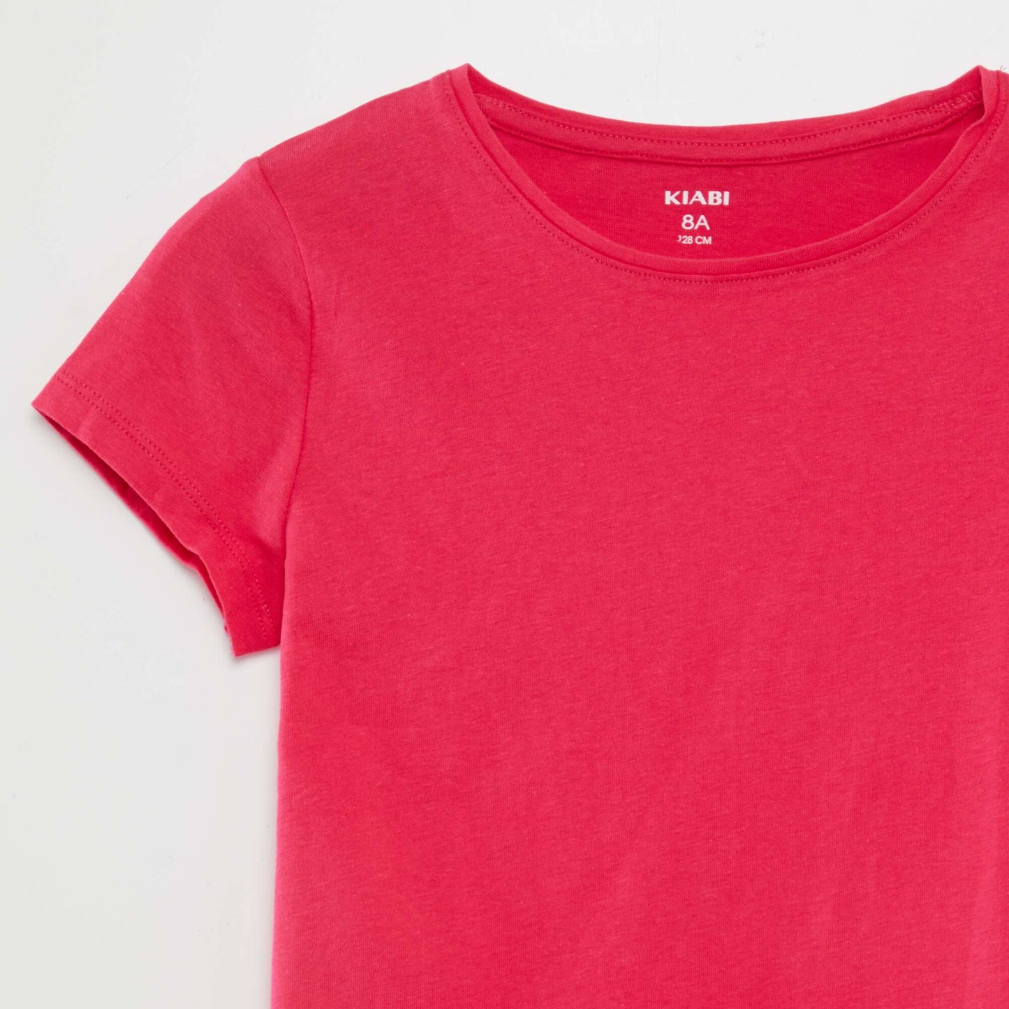 Un basique à petits prix, à multiplier pour switcher les styles ;-) \n\n- T-shirt en maille jersey \n- 100% coton \n- Col rond \n- Manches courtes \n- Couleur unie