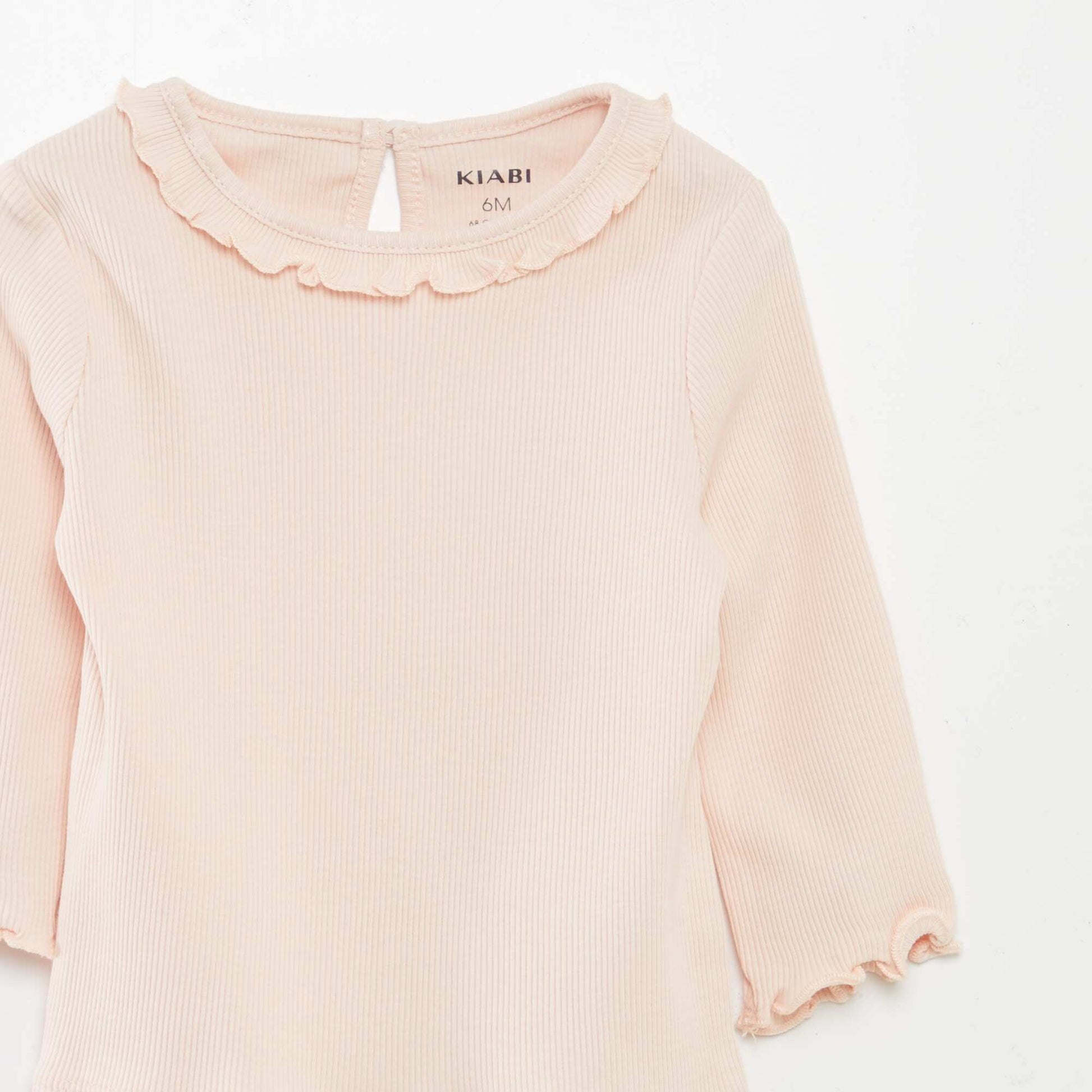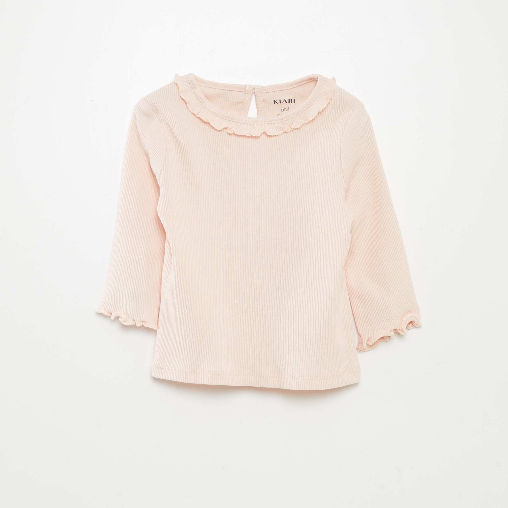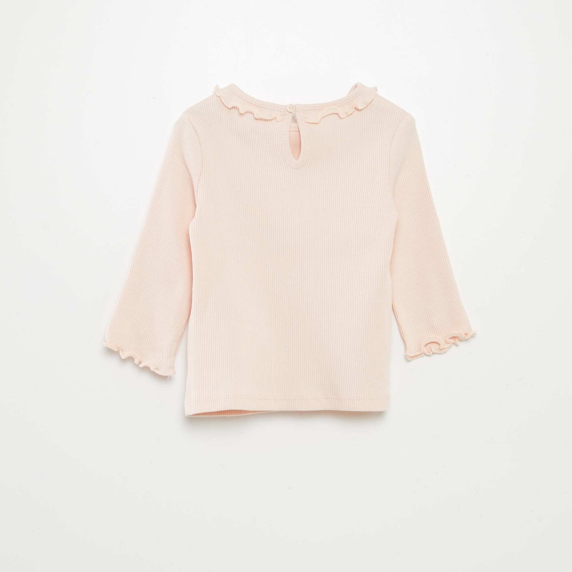 Un joli tee-shirt pour baby girl. On adore son choix de coloris !\n\n- Tee-shirt en maille \n- 100% coton issu de l'agriculture biologique \n- Col rond volanté \n- Manches longues \n- Ouverture goutte d'eau au dos \n- Imprimé all-over \n\nCe produit est composé à 100% de fibres de coton issues de l’agriculture biologique. Le coton biologique est cultivé sans graine OGM avec du compost naturel qui remplace les engrais chimiques et les pesticides.