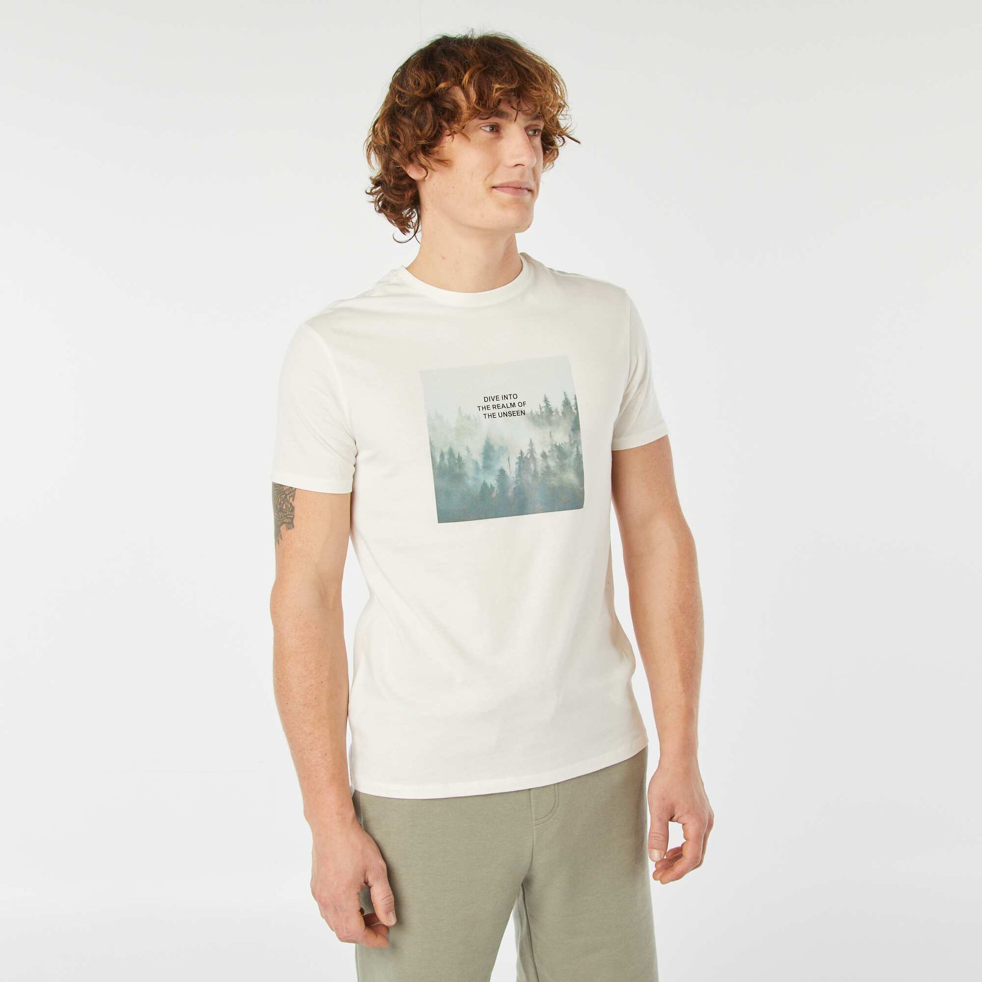 Une collection de t-shirts imprimé ! \n\n- T-shirt \n- En jersey \n- Manches courtes \n- Col rond \n- Imprimé devant \n- Longueur dos : 71 cm environ \n\n- Notre mannequin porte une taille M et mesure 1m87