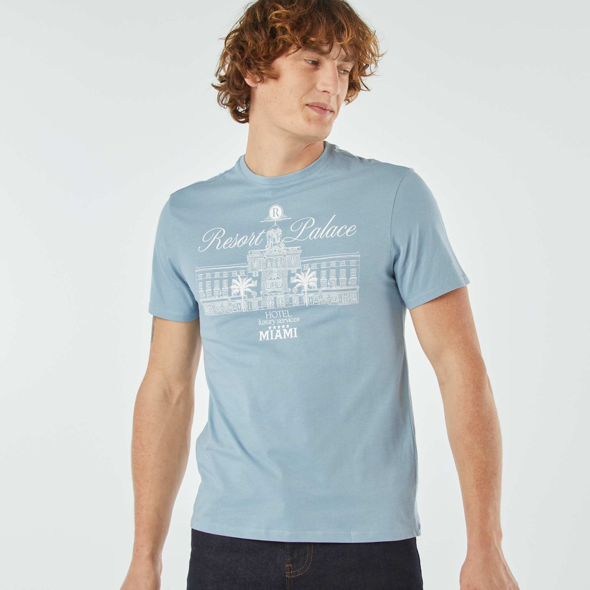 Une collection de t-shirts imprimé ! \n\n- T-shirt \n- En jersey \n- Manches courtes \n- Col rond \n- Imprimé devant \n- Longueur dos : 71 cm environ \n\n- Notre mannequin porte une taille M et mesure 1m87