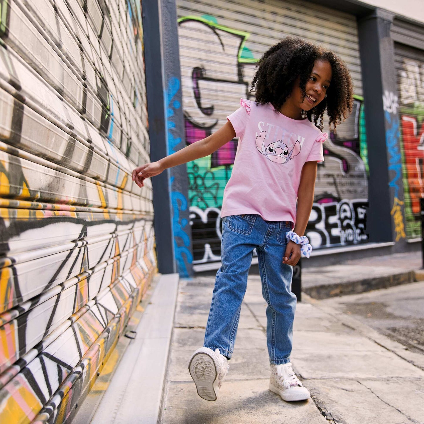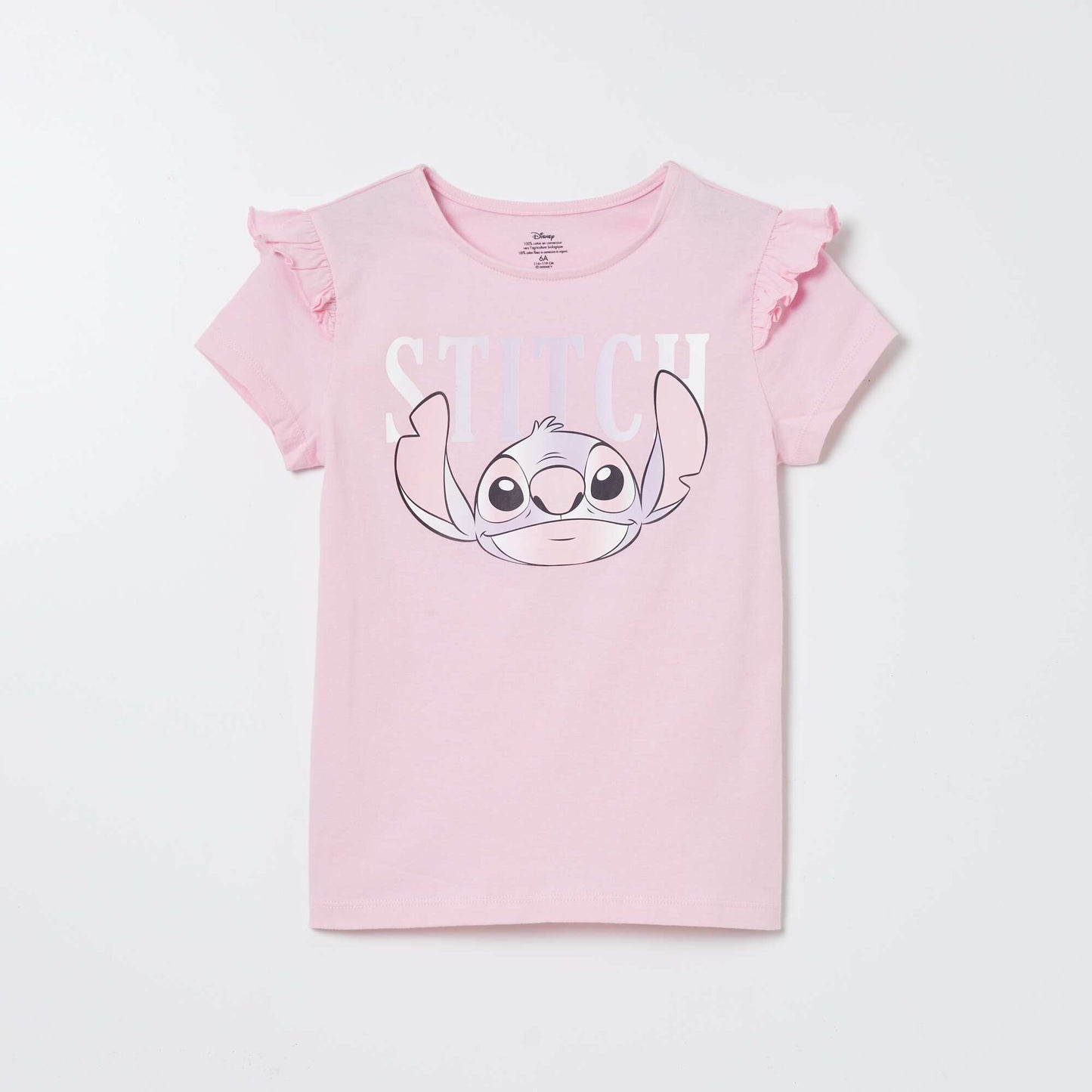 Un joli T-shirt à l'effigie de son personnage 'Disney' préféré ! - T-shirt 'Stitch' à manches volantées - Col rond - Manches courtes - Volants aux emmanchures - Imprimé 'Stitch' poitrine
