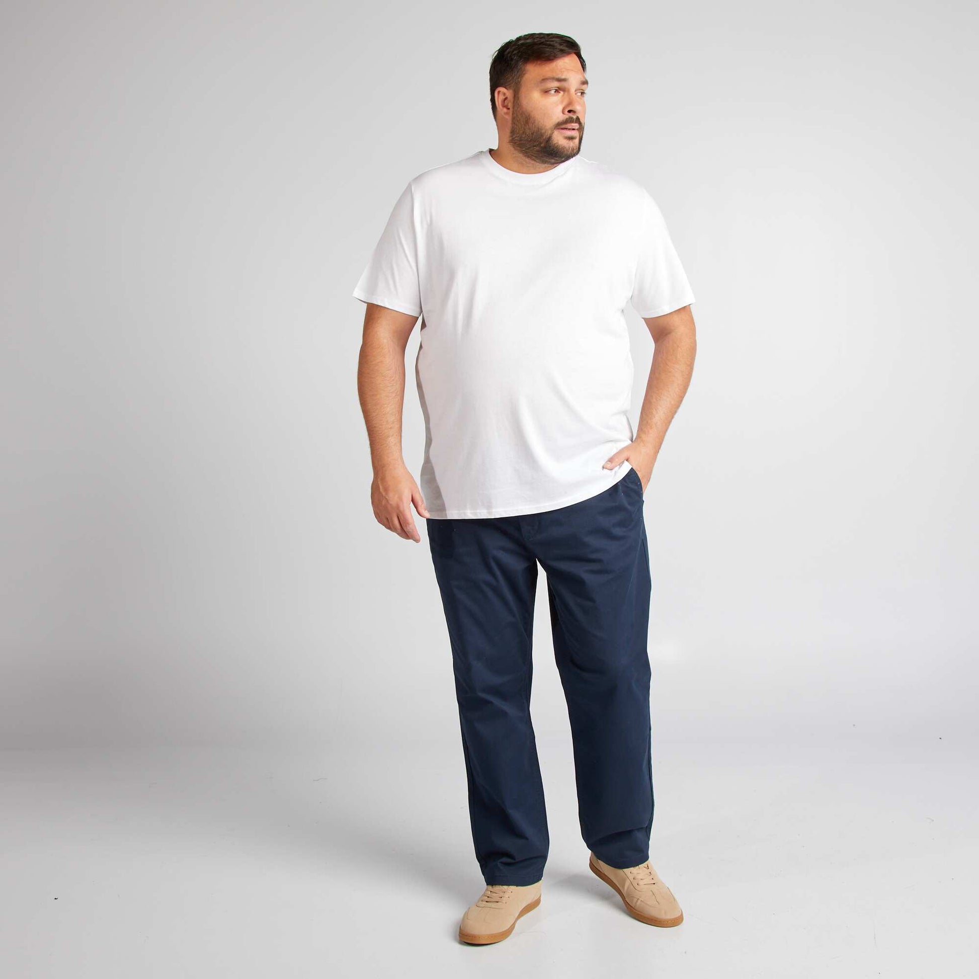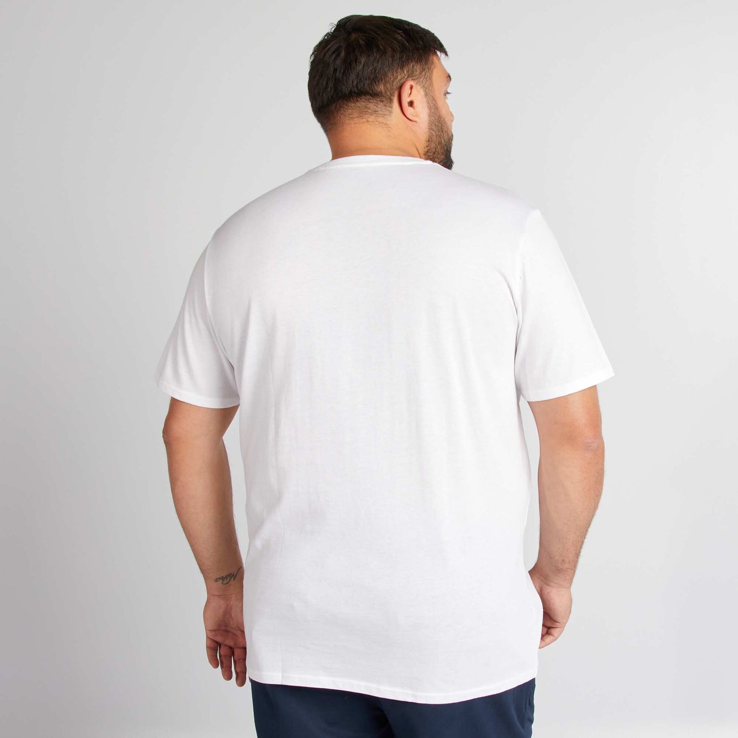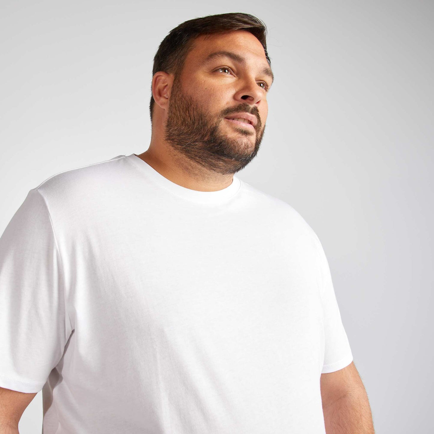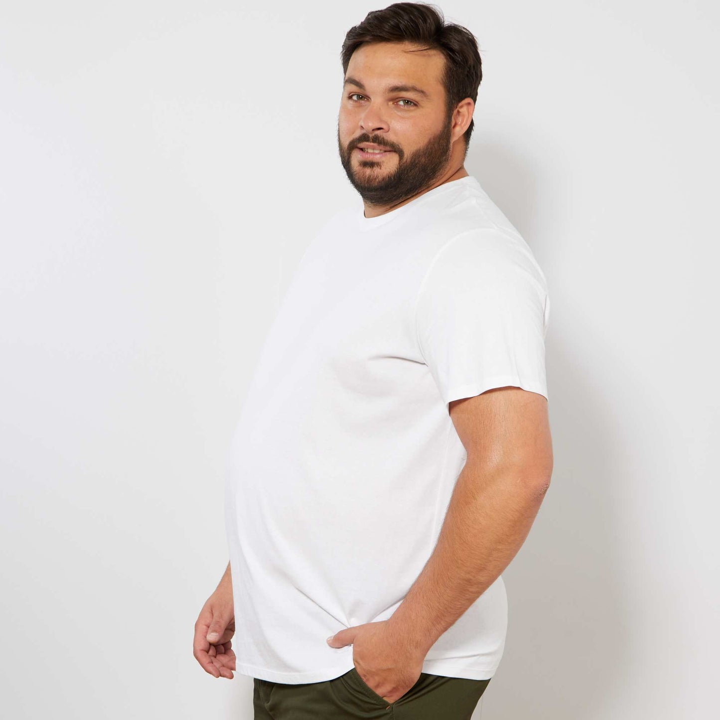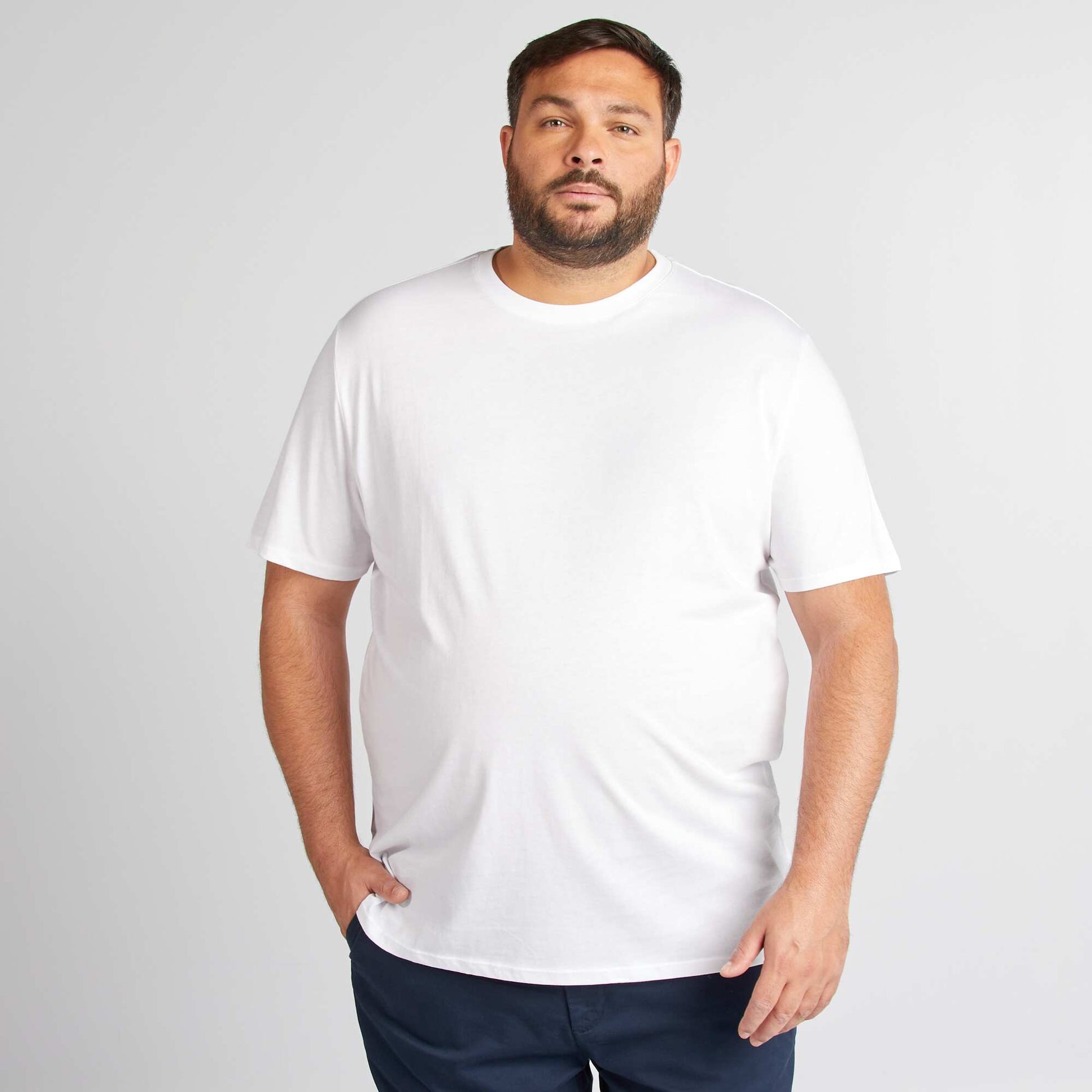 Un basique à avoir dans son dressing, simple et efficace pour un look bien soigné ! \n\n- T-shirt en maille jersey \n- Regular fit / coupe droite \n- Col rond \n- Manches courtes \n- Longueur dos : 80 cm \n\n- Notre mannequin porte une taille 3XL et mesure 1m87