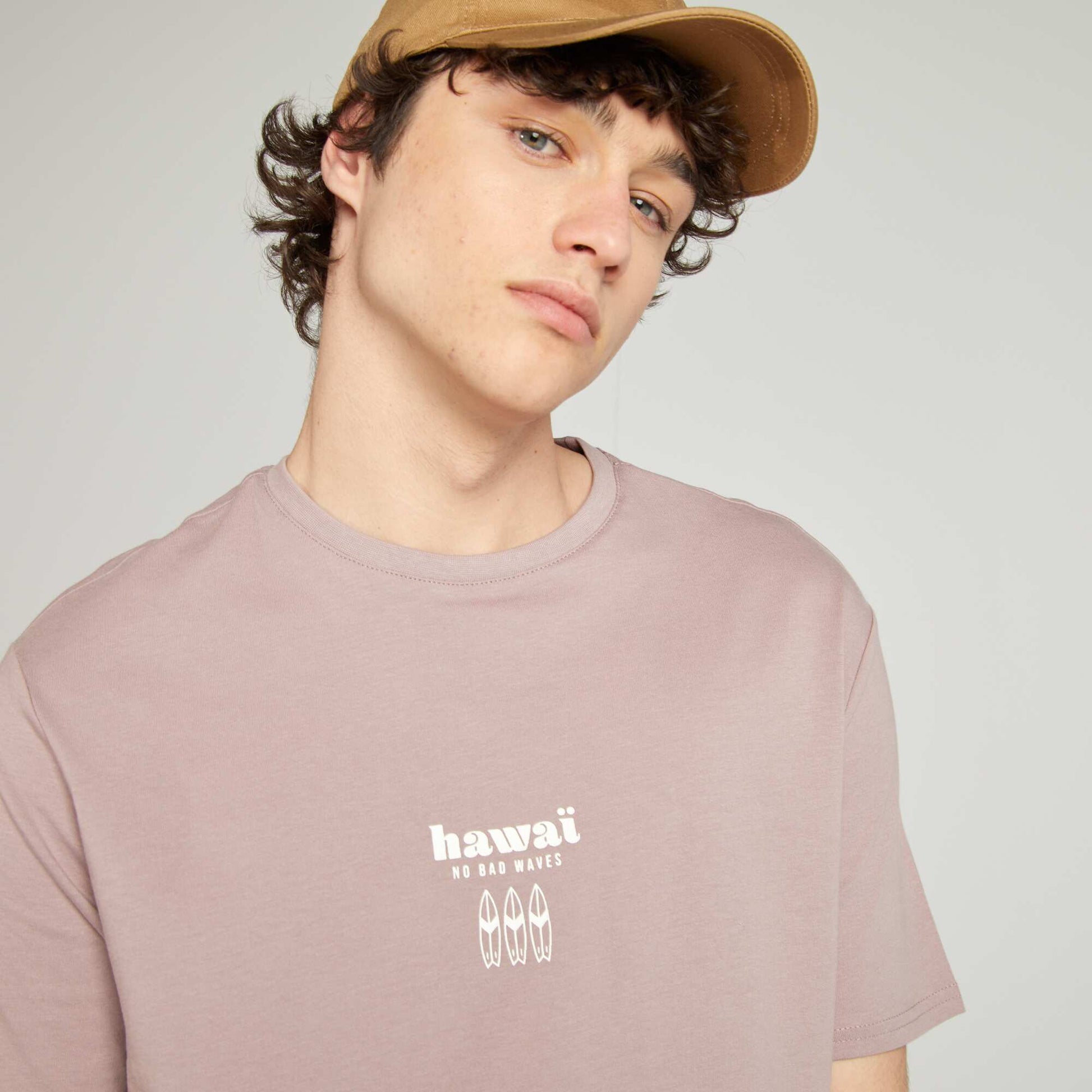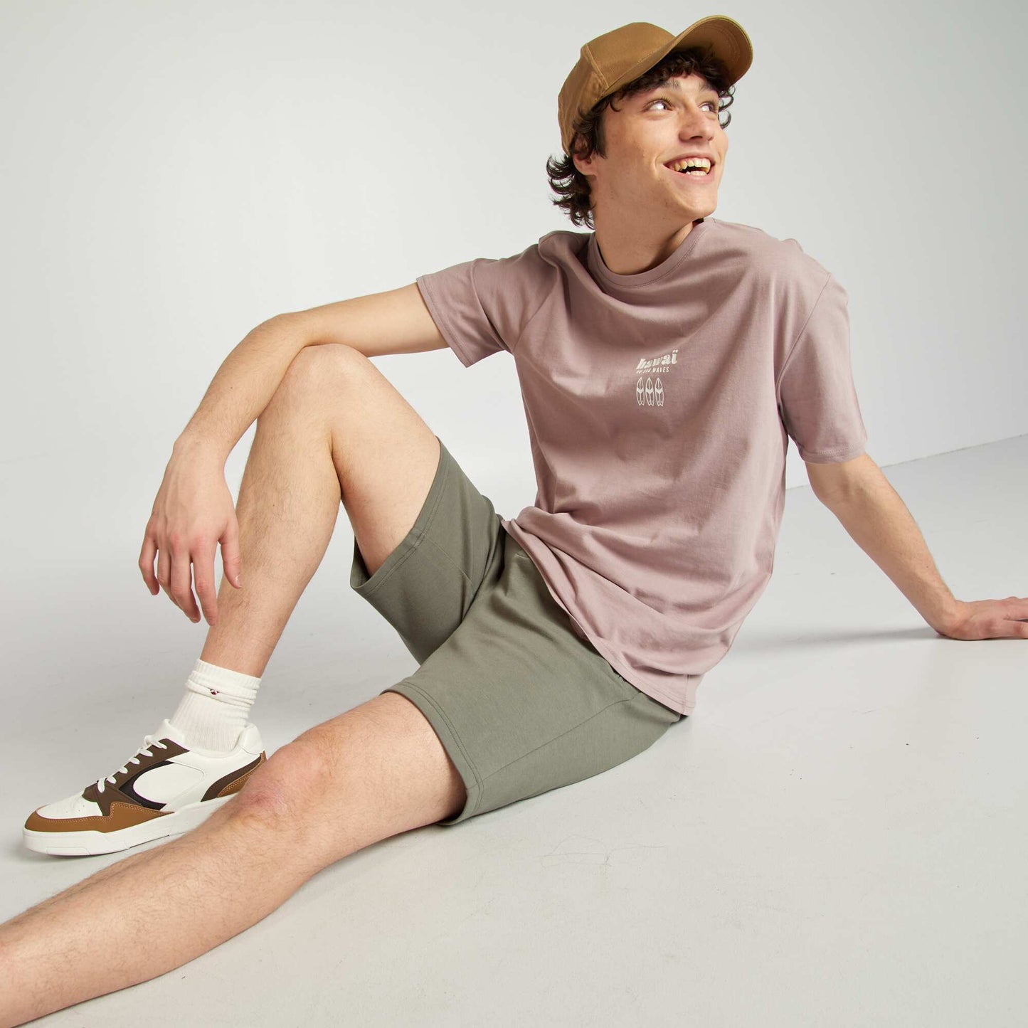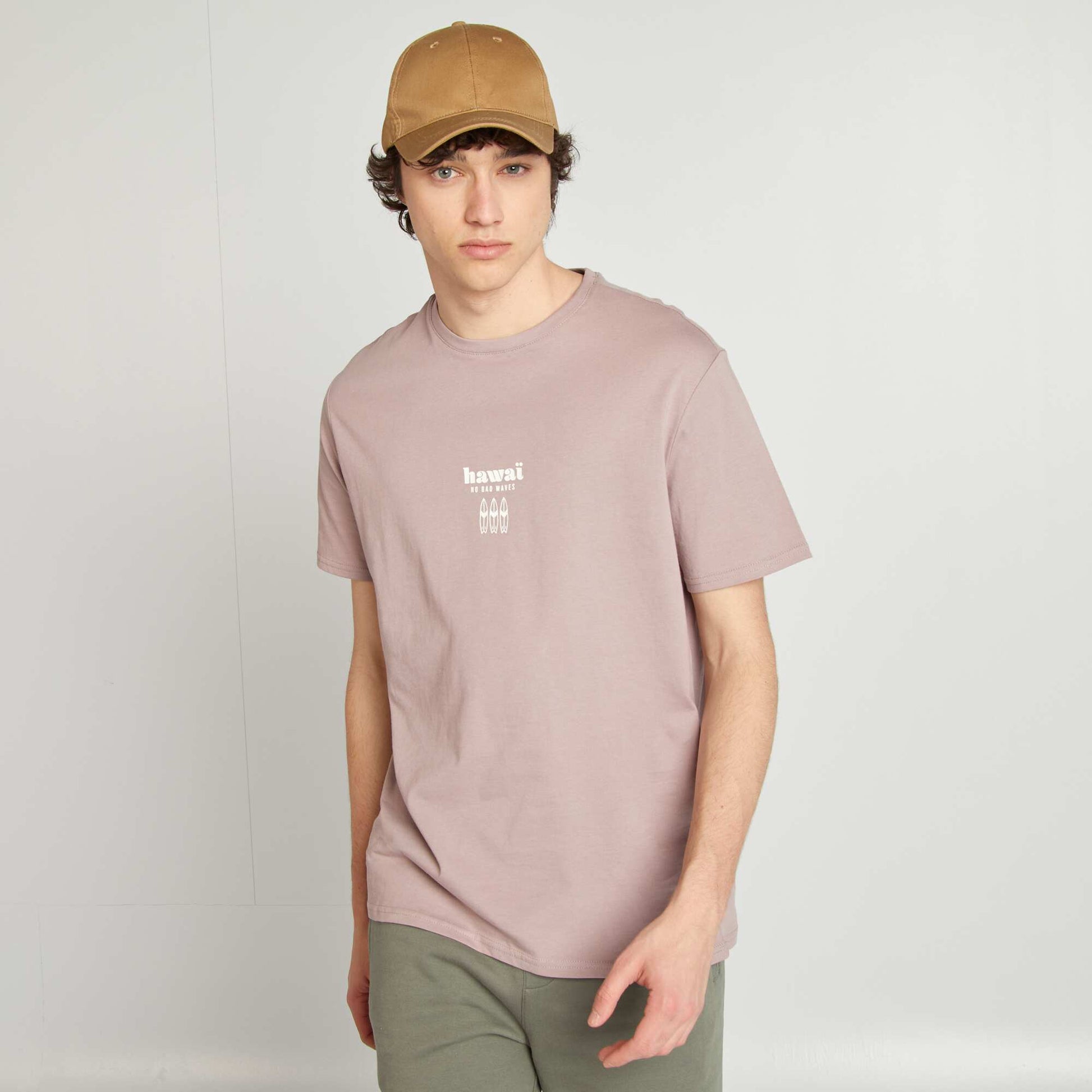 Une collection de t-shirts avec un large choix d'imprimés et de couleurs ! Lequel allez-vous choisir ? \n\n- Tee-shirt en jersey\n- Coupe droite / regular \n- Col rond \n- Manches courtes \n- Imprimé placé devant \n- Longueur dos : 69 cm environ\n\n- Notre mannequin porte une taille M et mesure 1m80