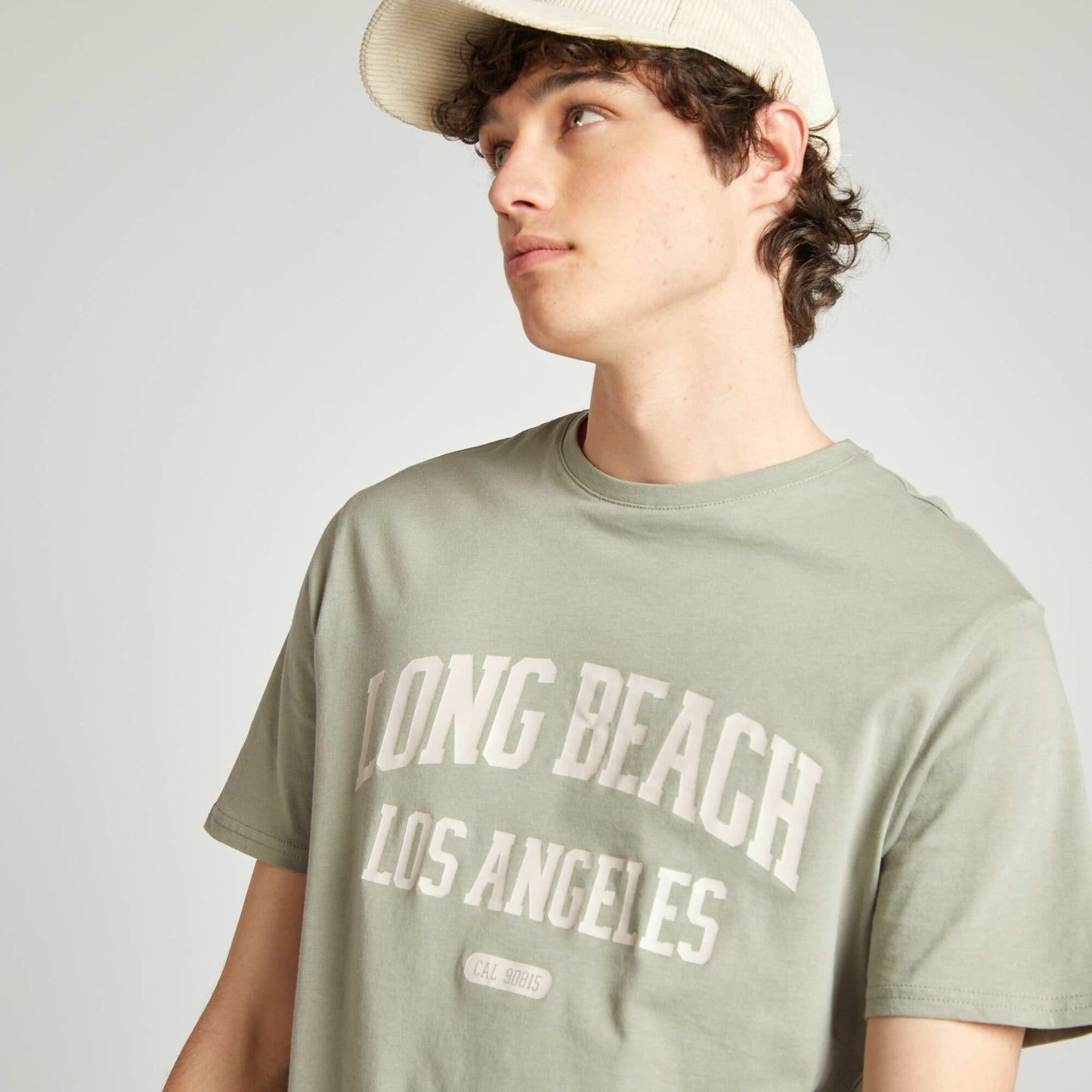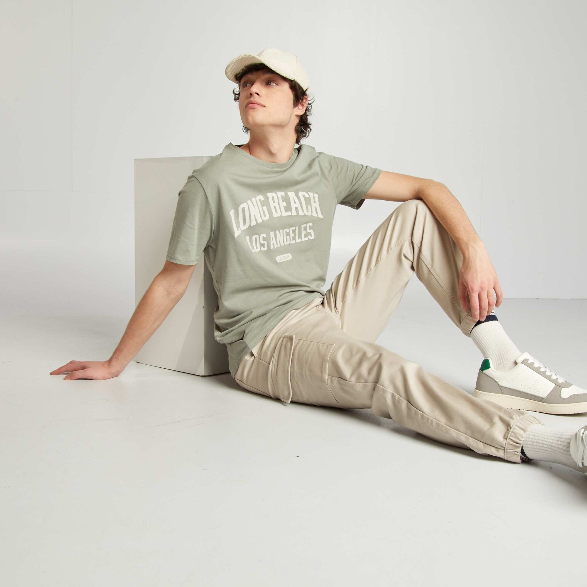 Une collection de t-shirts avec un large choix d'imprimés et de couleurs ! Lequel allez-vous choisir ? \n\n- Tee-shirt en jersey\n- Coupe droite / regular \n- Col rond \n- Manches courtes \n- Imprimé placé devant \n- Longueur dos : 69 cm environ\n\n- Notre mannequin porte une taille M et mesure 1m80